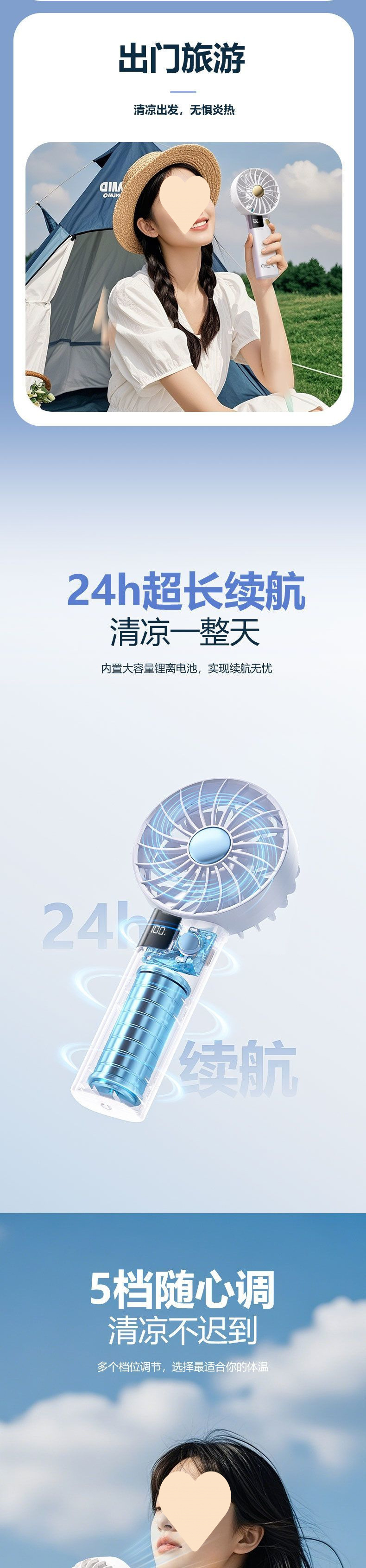 휴대용 소형 팬, 귀여운, 휴대용, 소형, 저소음, 미니 학생, 충전식, 긴 배터리 수명