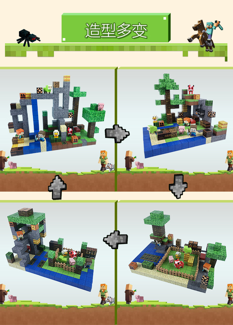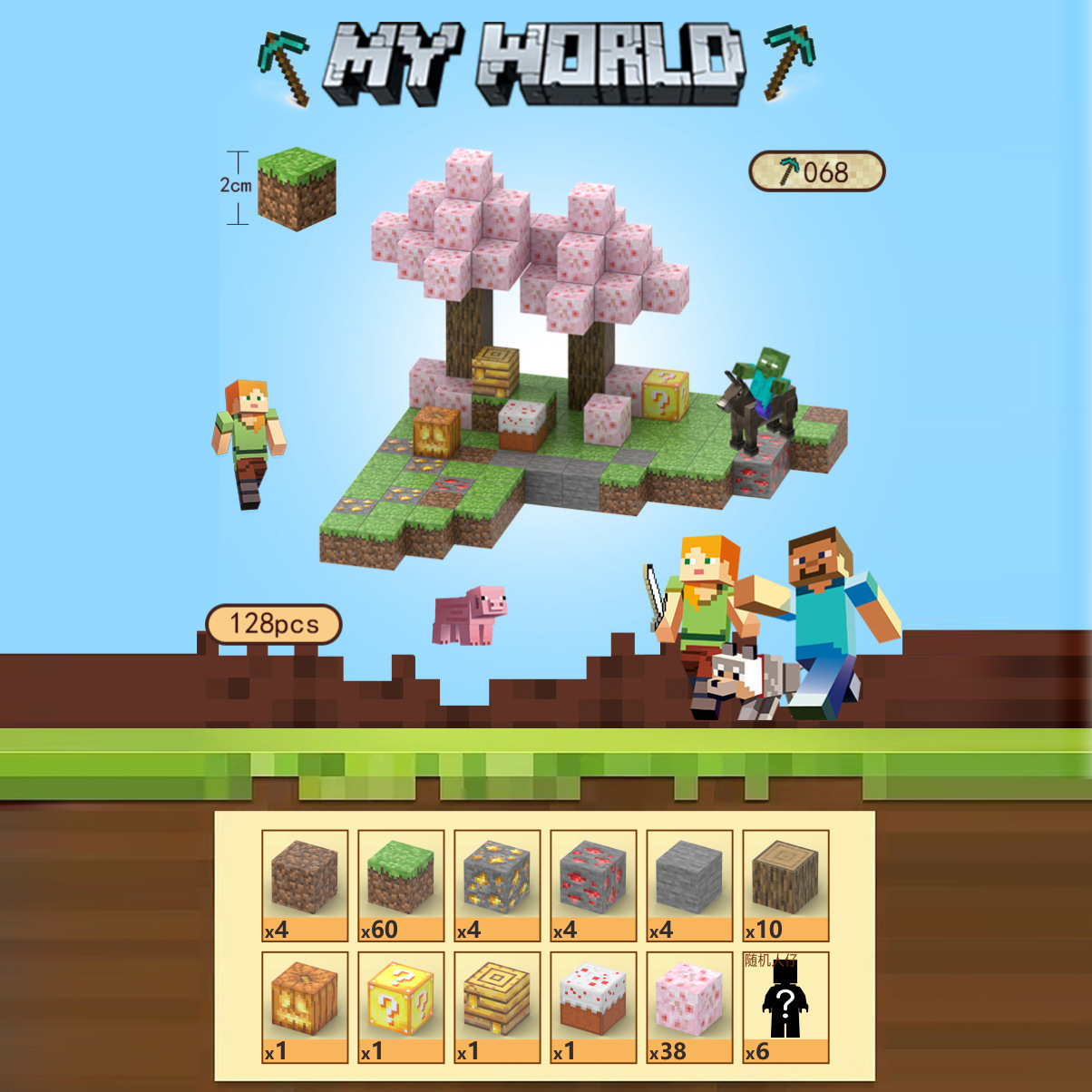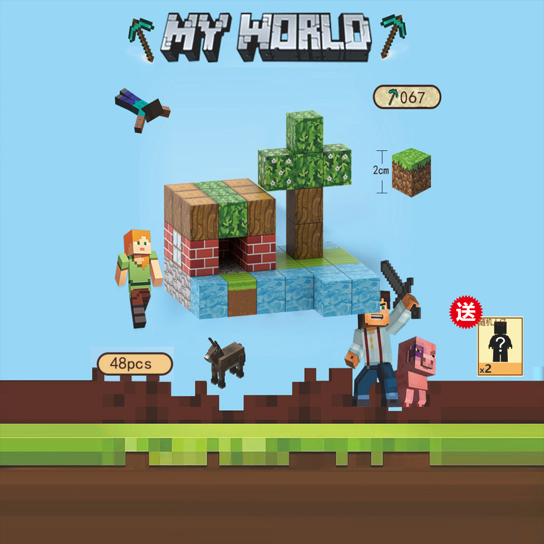 선물 세계 어린이 교육 장난감 자기 빌딩 블록 모델 장식품 DIY 내 인형 성 블록 대형 입자스토어 가기