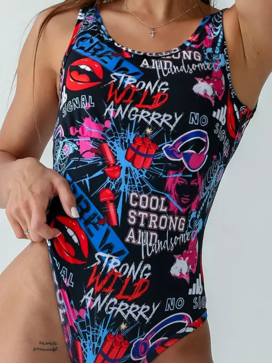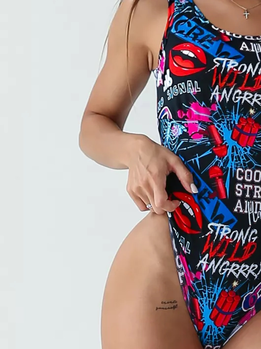 유럽과 미국의 새로운 원피스 수영복, 여성스럽고 꽉 끼는 등이없는 프린트 원피스 크로스 보더 Amazon AliExpress 수영복