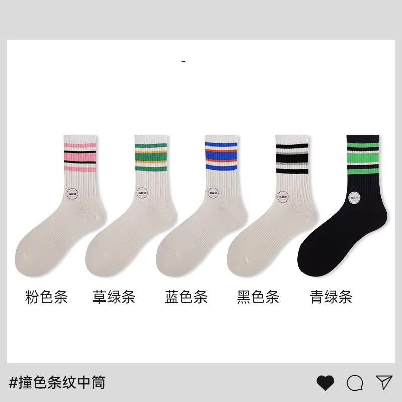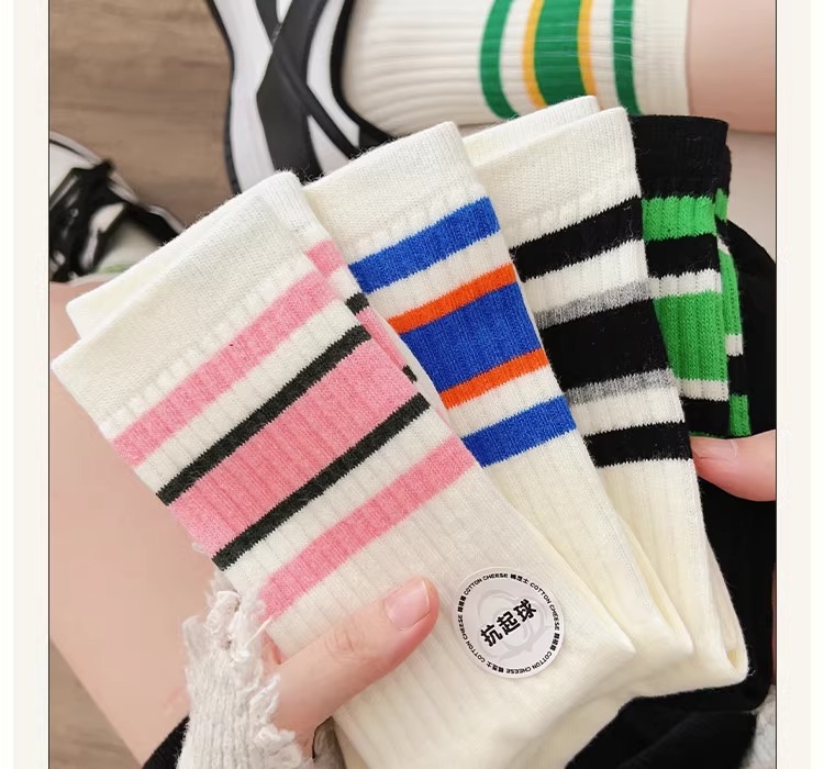 보풀 방지 일본식 대비 색 줄무늬 양말 여성용 종아리 중간 양말 트렌디 솔리드 컬러 봄, 가을 커플 스포츠 학생 양말스토어 가기