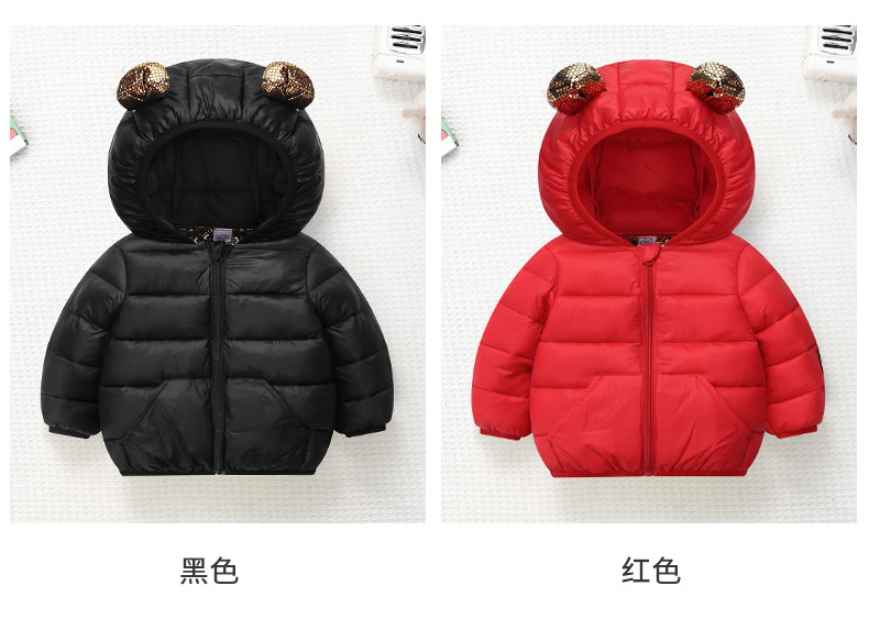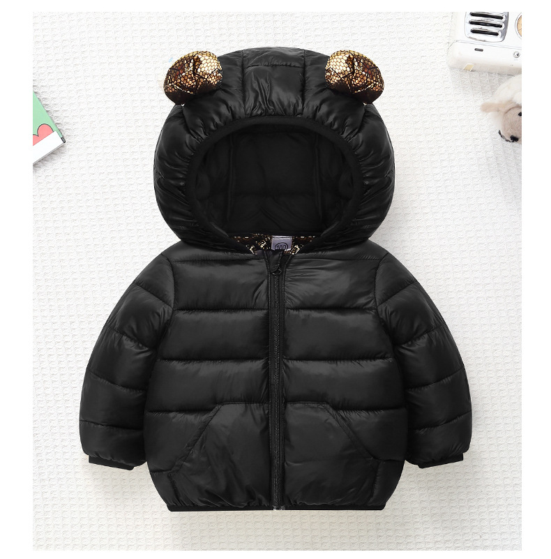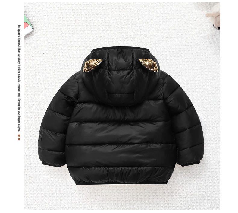 겨울 어린이 다운 재킷, 아기 짧은 검정색과 금색 면 재킷, 소년 소녀용 후드 면 재킷, 아동용 유아용 재킷, 유행