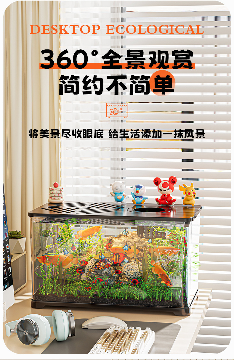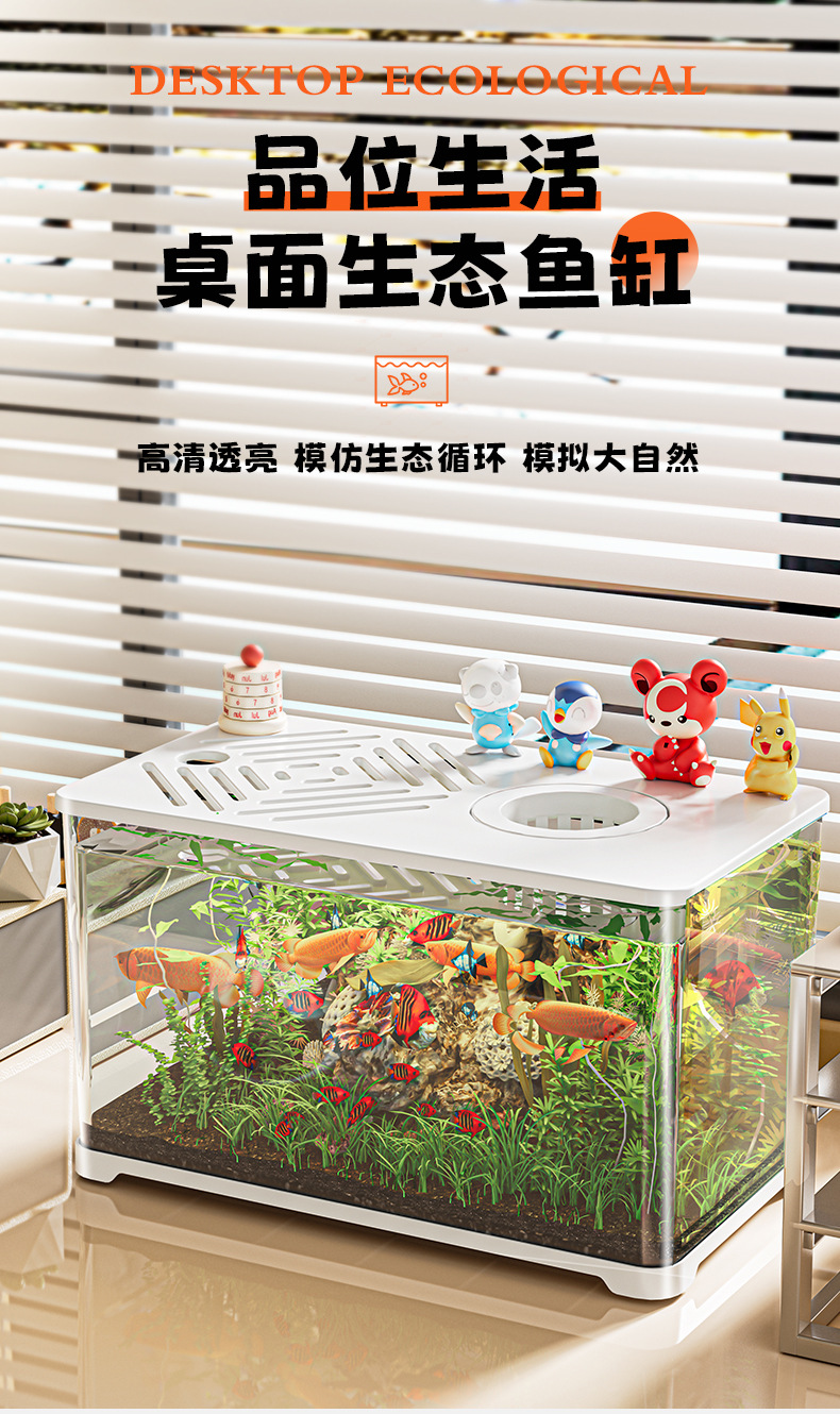 새로운 생태 수조, 거실 데스크탑, 테라스가 있는 투명한 고급 조경, 거북이 수조, 마이크로 조경, 작은 카피바라 수조스토어 가기