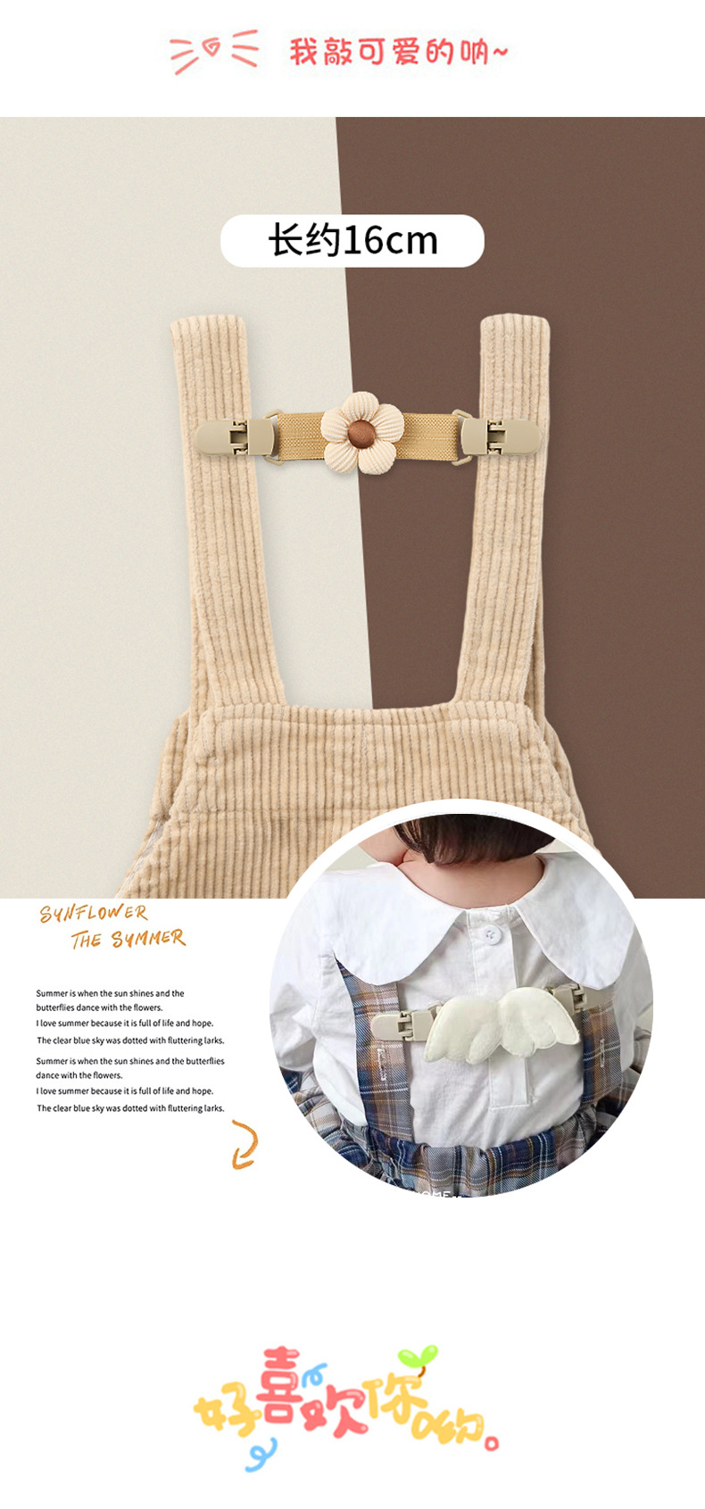어린이용 멜빵 스커트용 어깨끈 미끄럼 방지 클립, 어깨끈 조절 가능, 어깨 떨어짐 방지스토어 가기