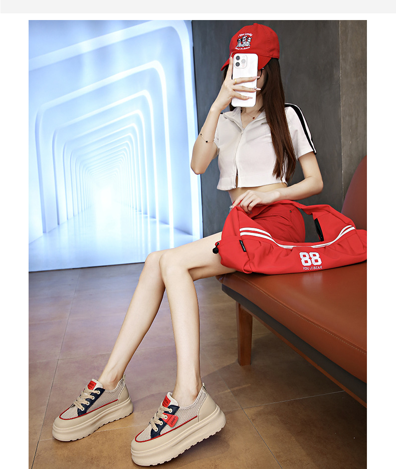 여성용 두꺼운 밑창 메쉬 신발, 여성용 통기성 운동화, 2025 여름 한국식 학생용 얇은 중공 강화 캐주얼 운동화스토어 가기
