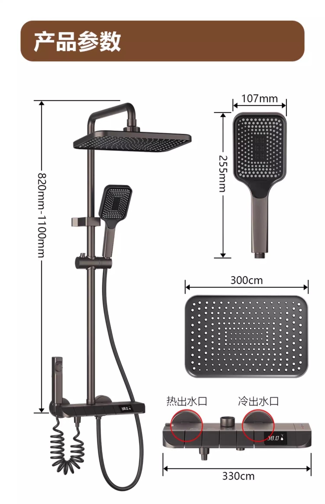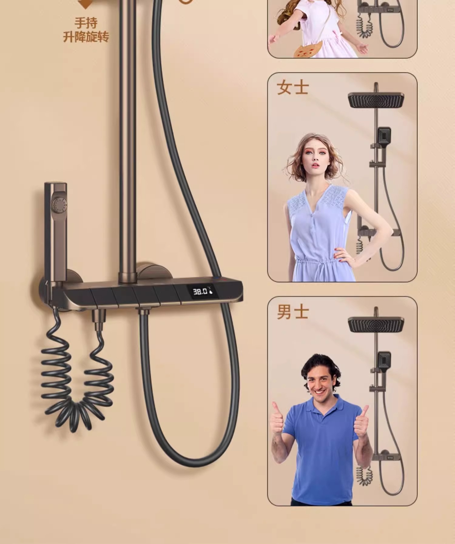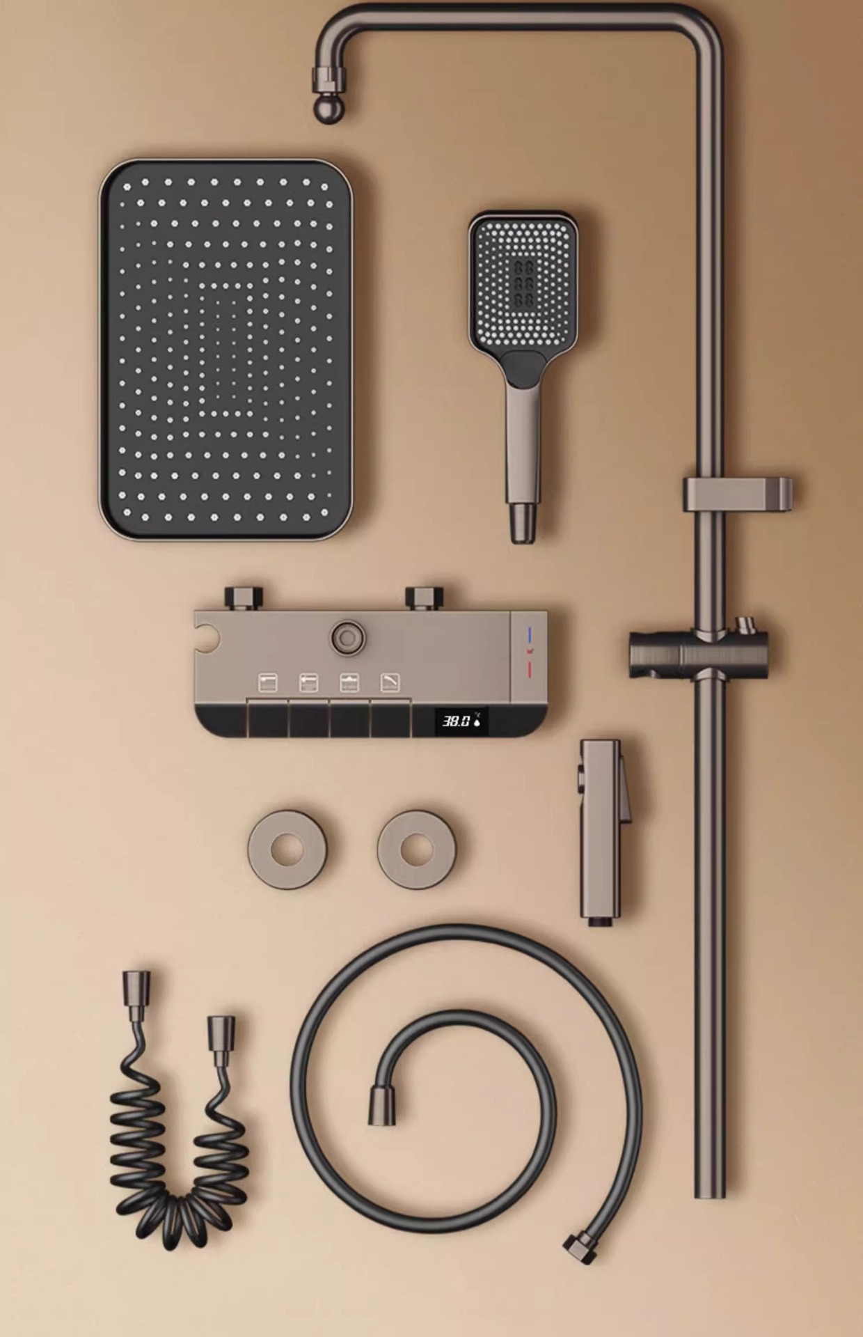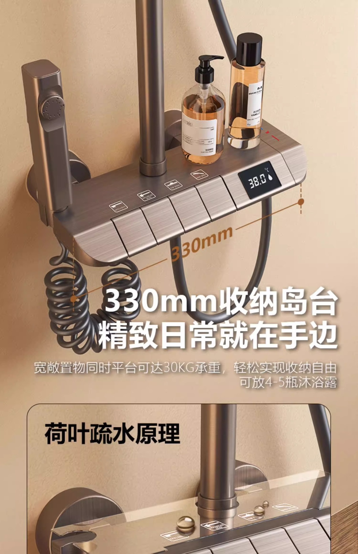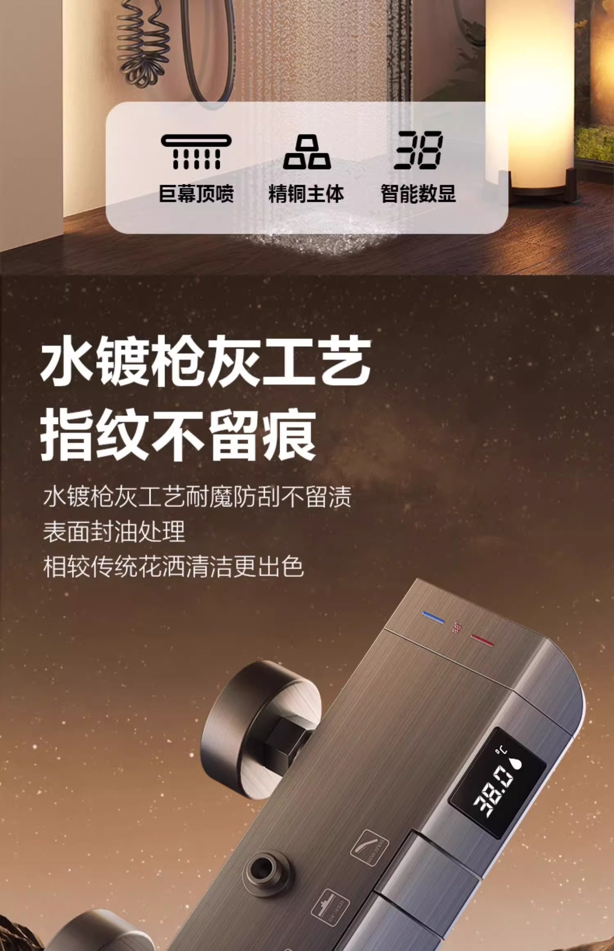 • 물 도금 브러시드 ☆ 주변광 - 4개의 물 배출구 - 지능형 디지털 디스플레이(항온) 무료 설치