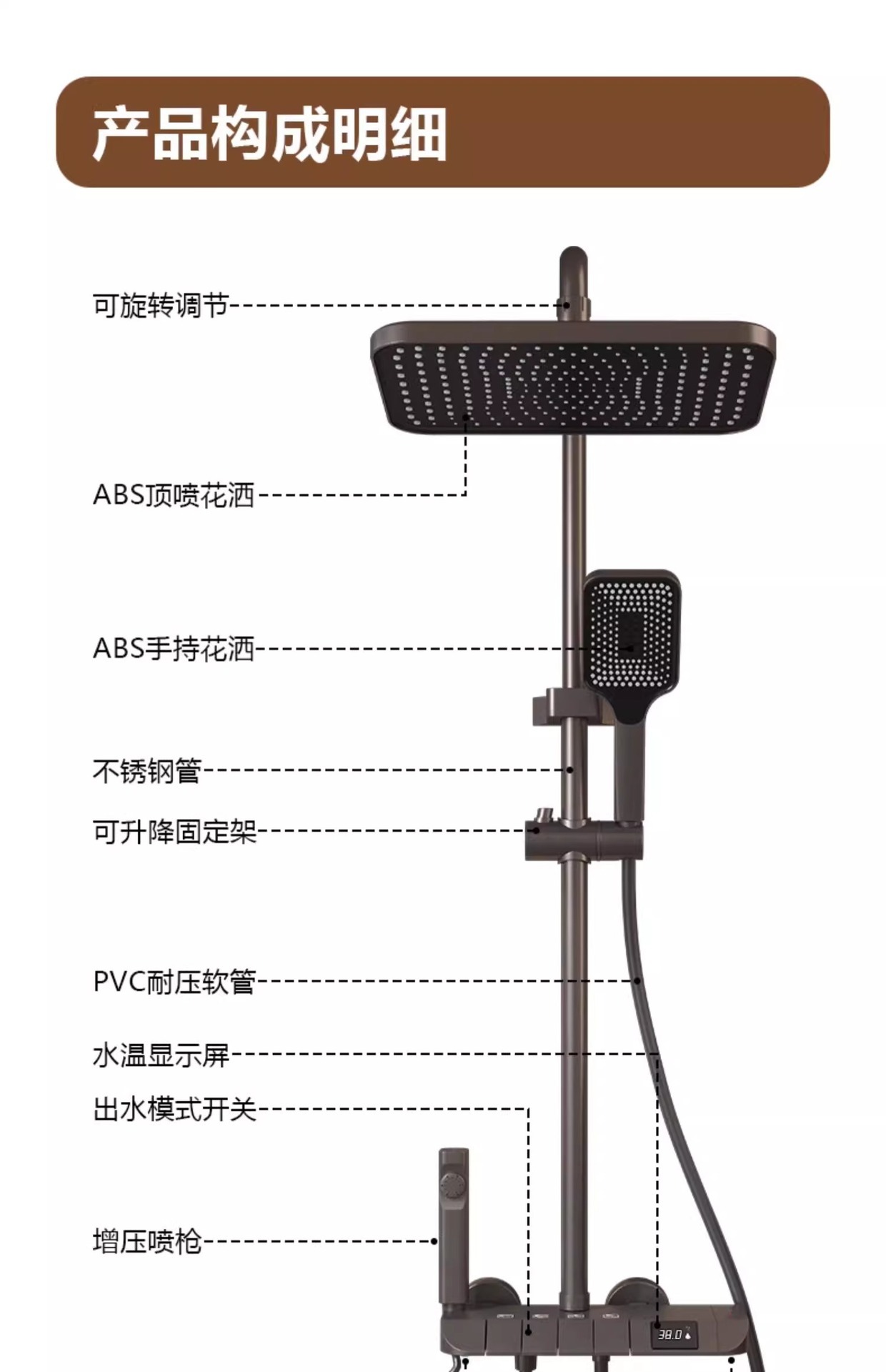 • [수도금 브러시드 고급 모델] ☆ 주변광 - 4개의 물 배출구 - 지능형 디지털 디스플레이(항온) 무료 설치