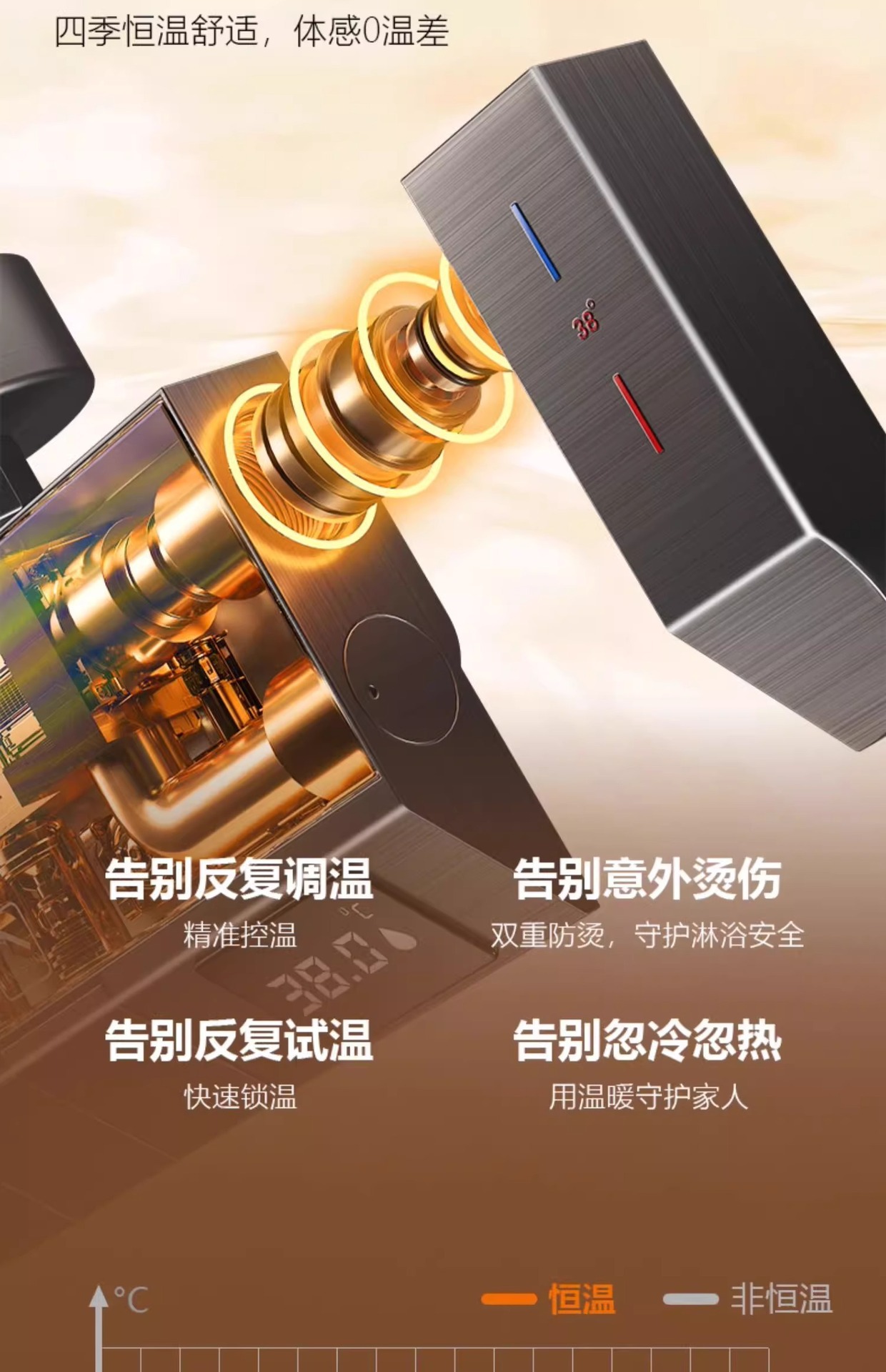 • 물 도금 브러시드 ☆ 4개의 물 배출구 - 지능형 디지털 디스플레이(항온) 무료 설치