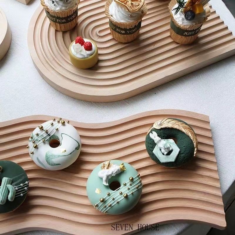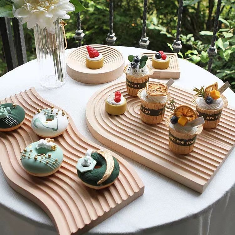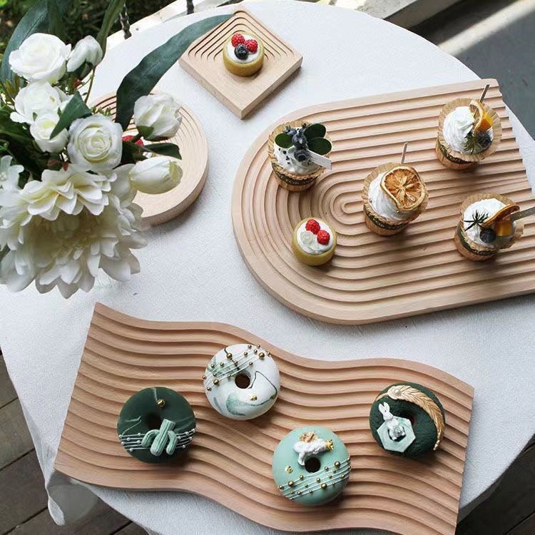 크리 에이 티브 케이크 트레이 단단한 나무 물 리플 절연 나무 컵 받침 나무 빵 커피 트레이 사진 장식품