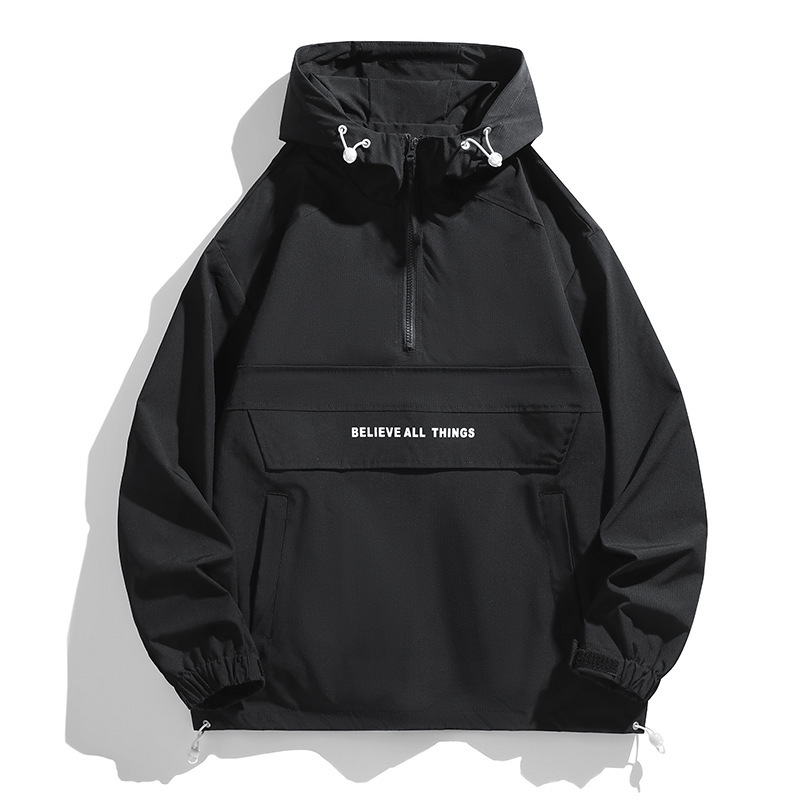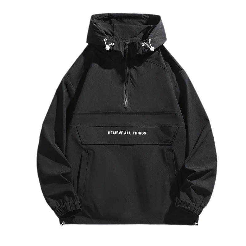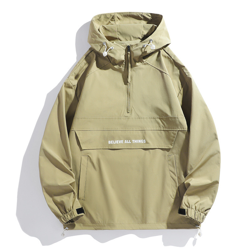 봄, 가을 남성용 크로스보더 재킷 미국 트렌디 브랜드 루즈한 하프 지퍼 재킷 커플 작업복 방풍 및 발수 아우터