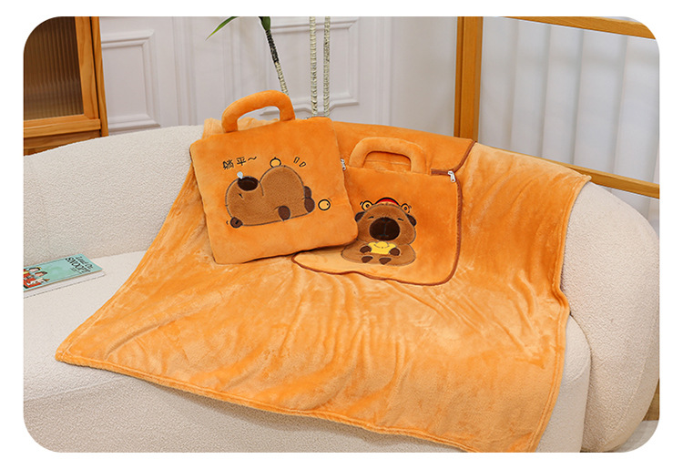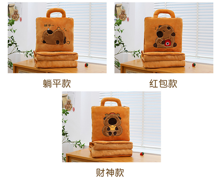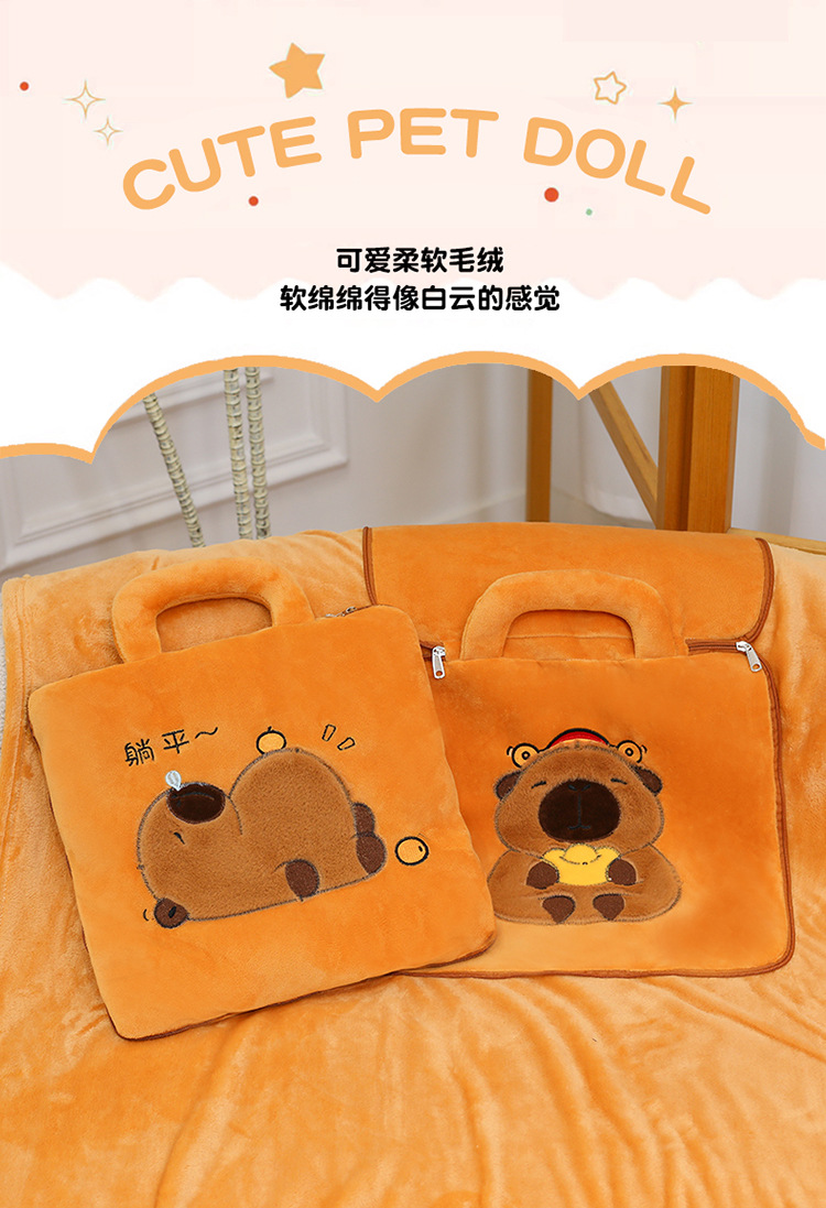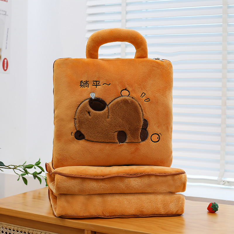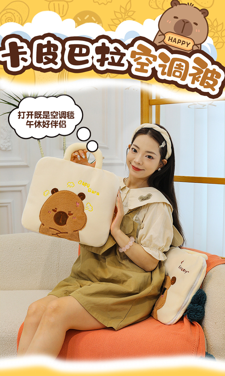 국경 간 새로운 카피바라 휴대용 에어컨 이불 다기능 투인원 베개 담요 쿠션 카피바라 여름 이불 여성용스토어 가기