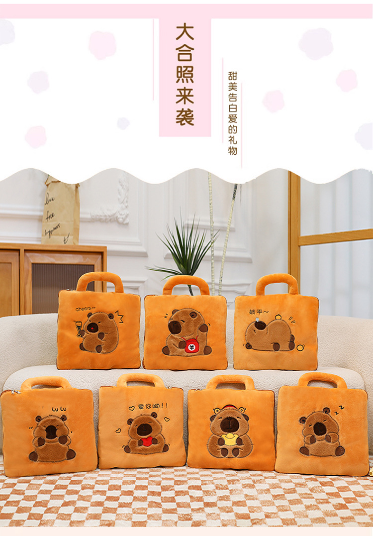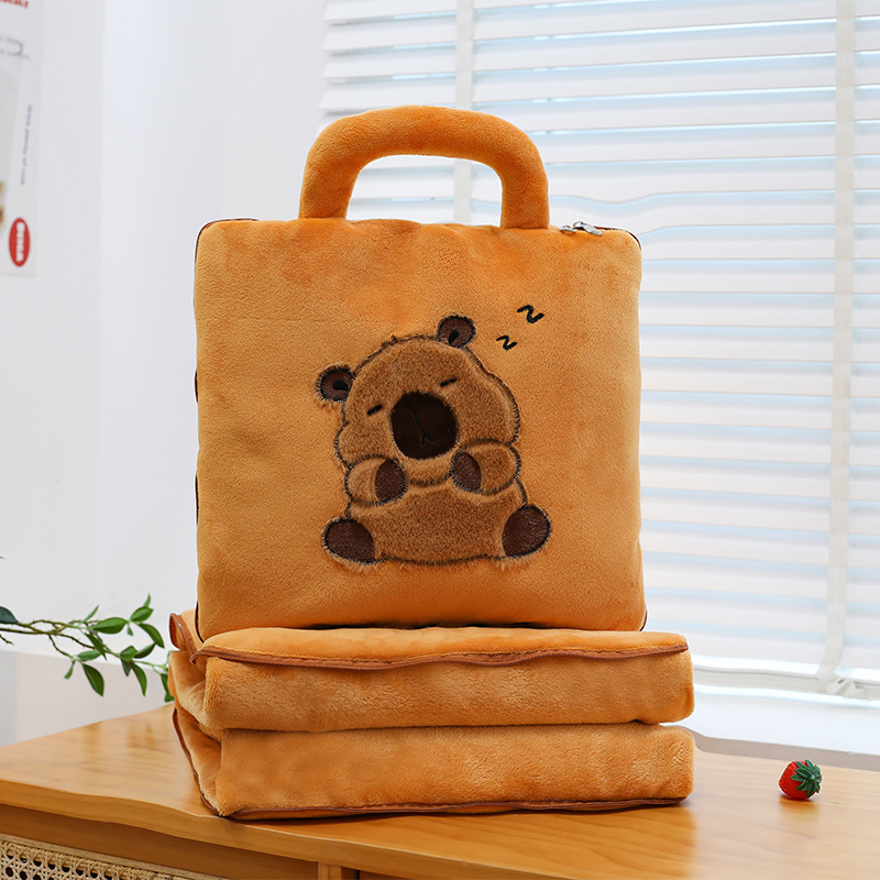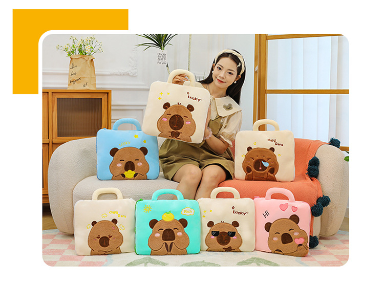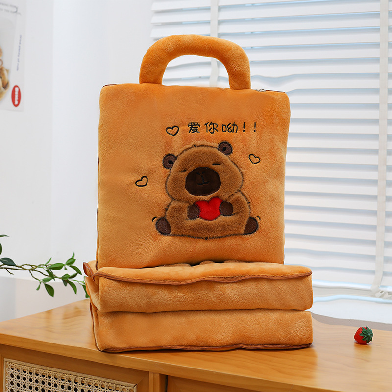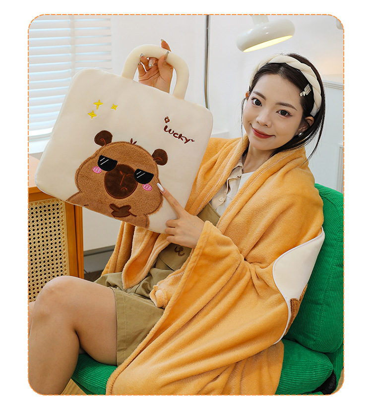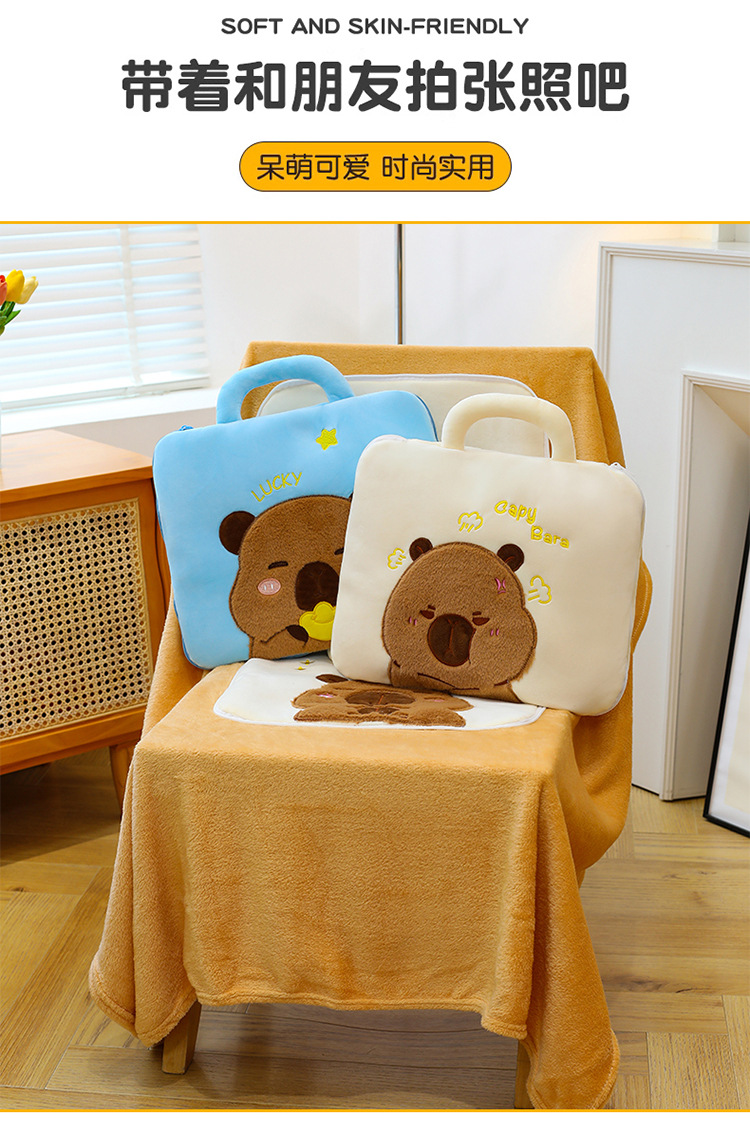 국경 간 새로운 카피바라 휴대용 에어컨 이불 다기능 투인원 베개 담요 쿠션 카피바라 여름 이불 여성용스토어 가기