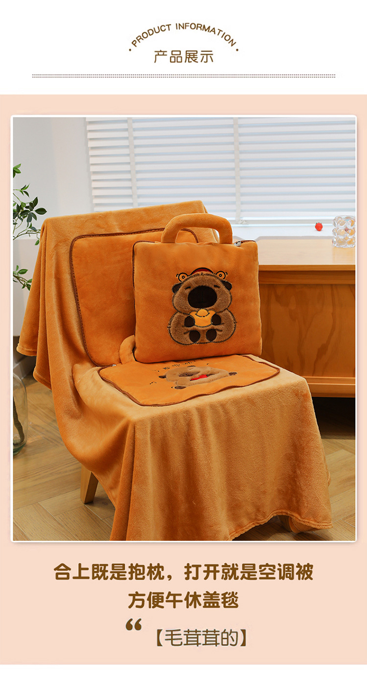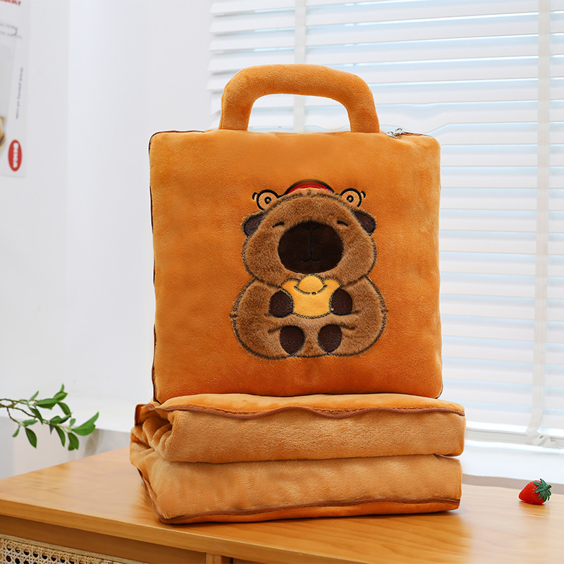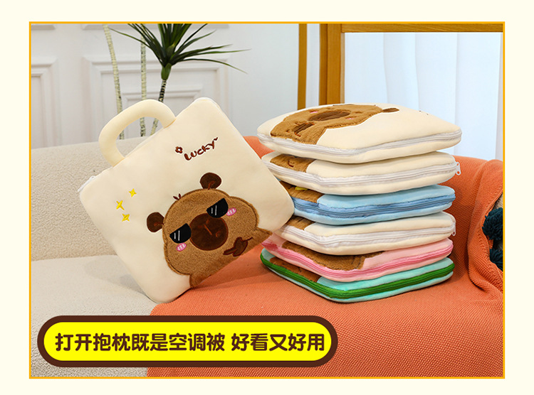 국경 간 새로운 카피바라 휴대용 에어컨 이불 다기능 투인원 베개 담요 쿠션 카피바라 여름 이불 여성용