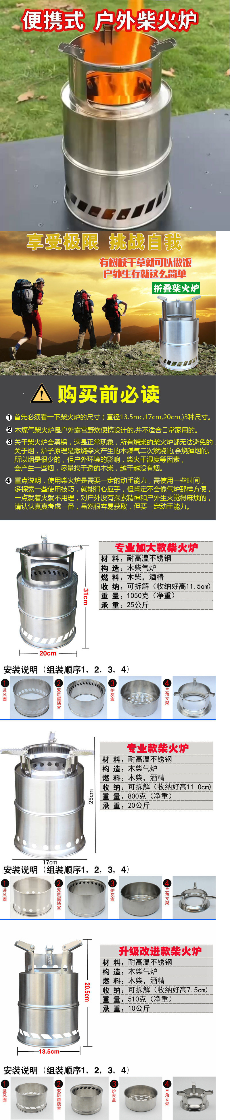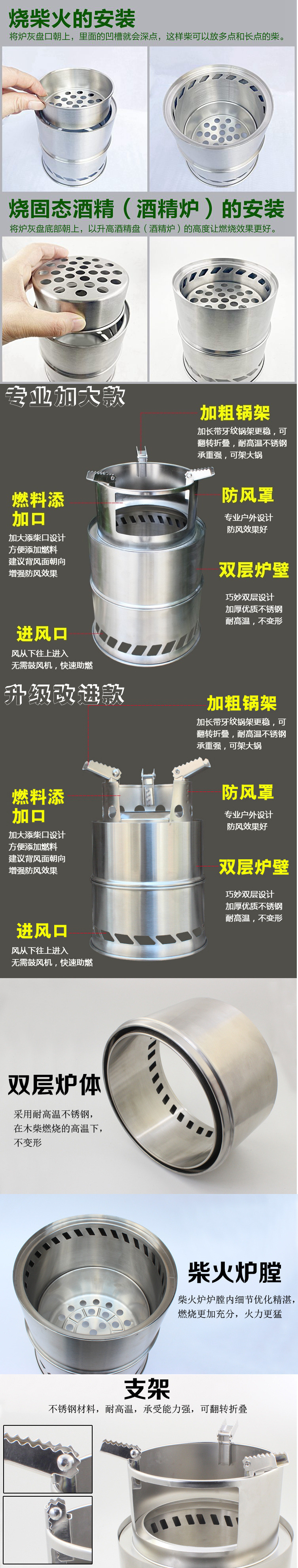 • 직경 18cm의 대형 일체형로 + 속도 조절 송풍기(수납 가방 포함) - 스테인레스 스틸 재질