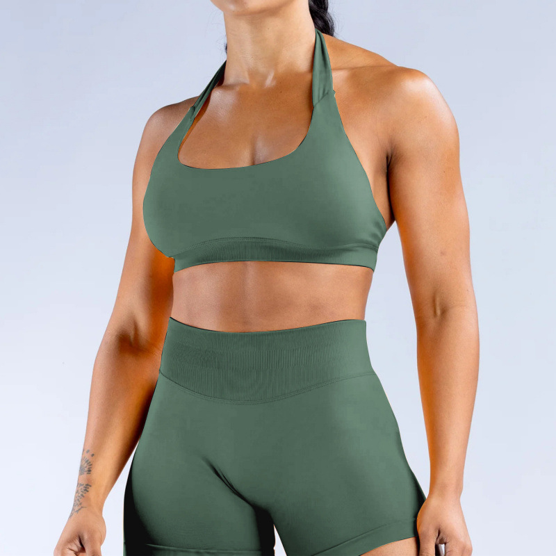 국경 간 고탄성 비스듬한 어깨 등이없는 스포츠 브라, 원활한 충격 흡수 요가 브라, 유럽 및 미국 엉덩이 리프팅 피트니스 슈트