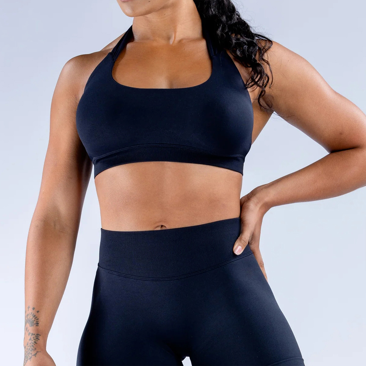 국경 간 고탄성 비스듬한 어깨 등이없는 스포츠 브라, 원활한 충격 흡수 요가 브라, 유럽 및 미국 엉덩이 리프팅 피트니스 슈트스토어 가기