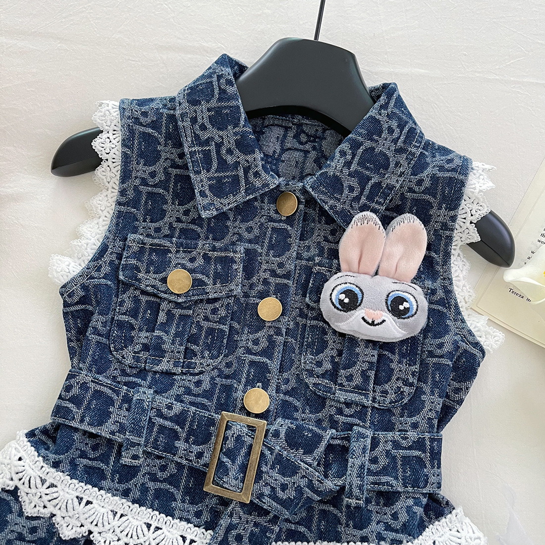 2025 새로운 여름 한국 스타일 아기 소녀 유행 자카드 데님 민소매 긴 기질 드레스 아동 의류스토어 가기