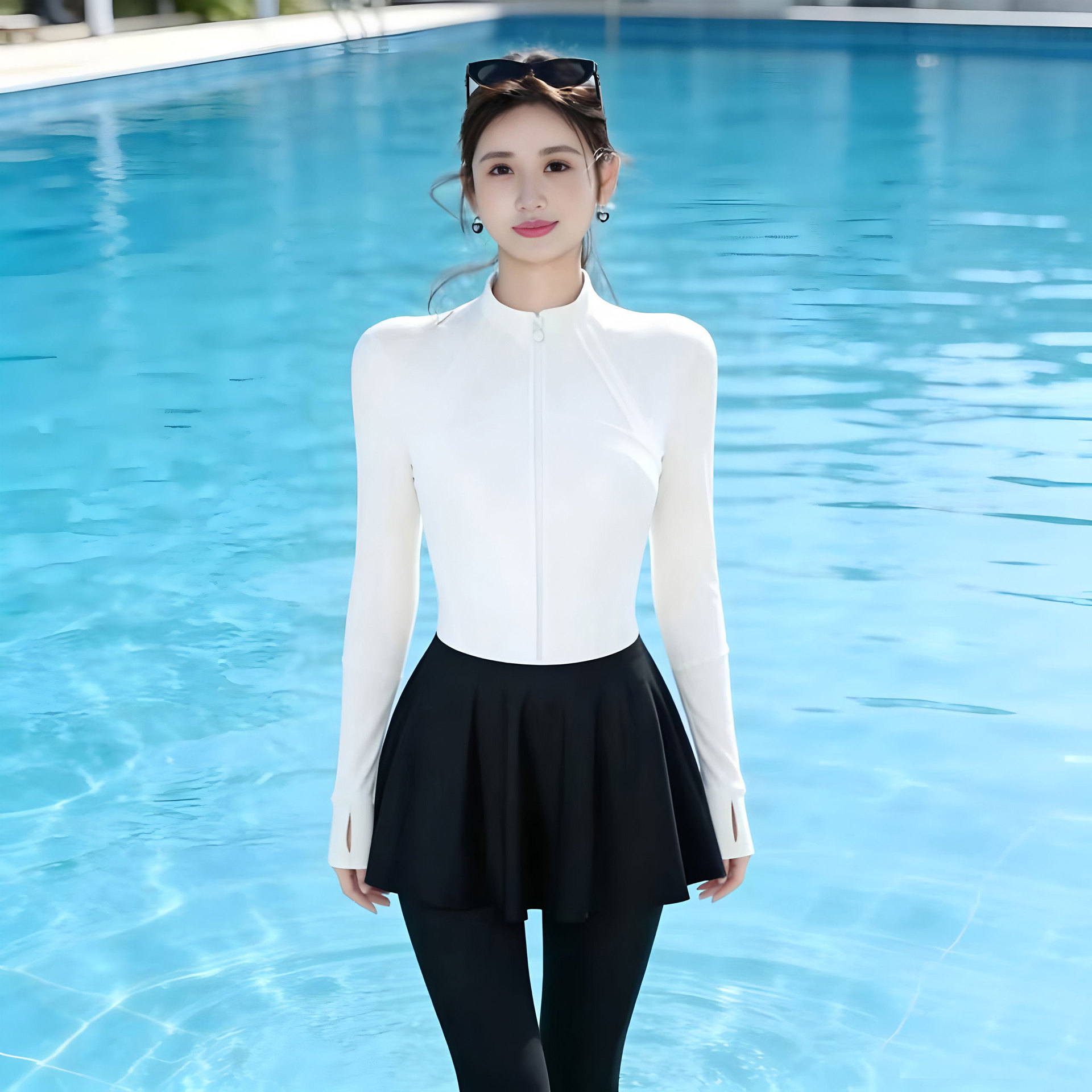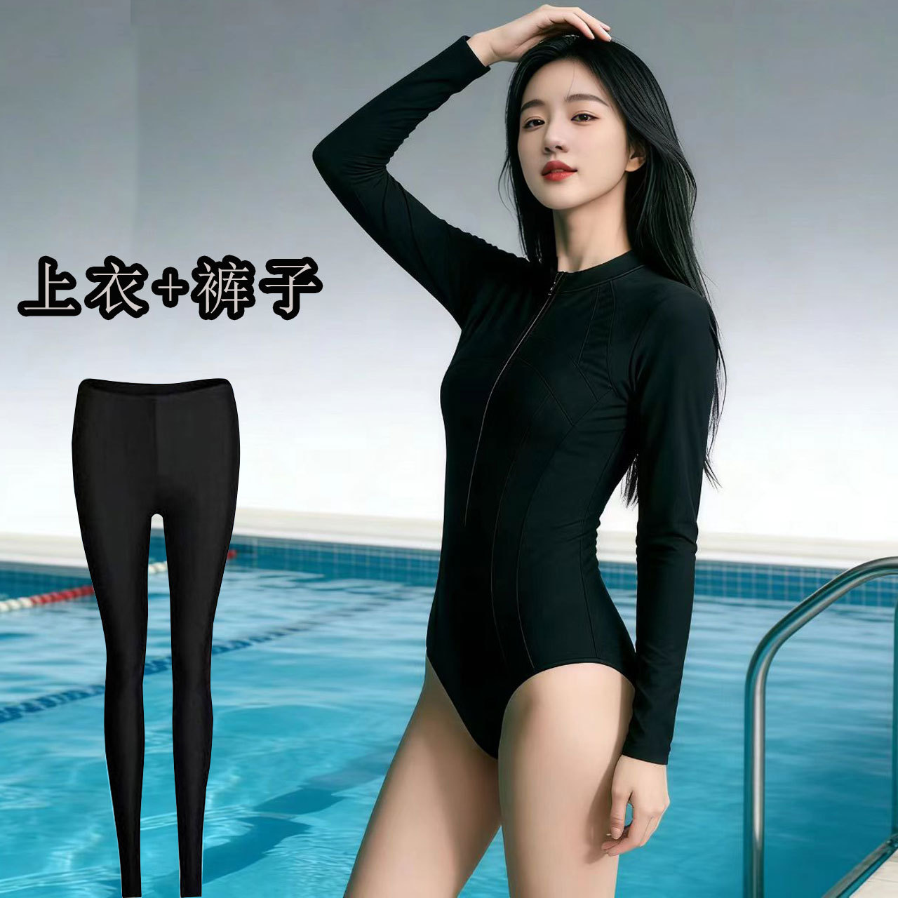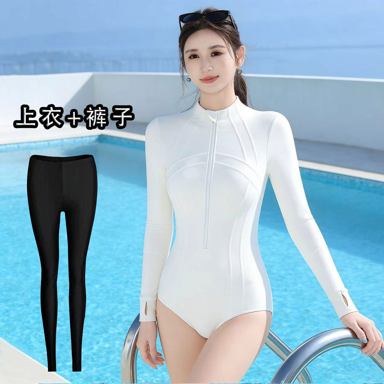 여성용 웨이크서핑 하이넥 수영복, 긴팔 바지, 전문 자외선 차단 UPF50+ 원피스 속건 잠수복, 해파리 수영복스토어 가기