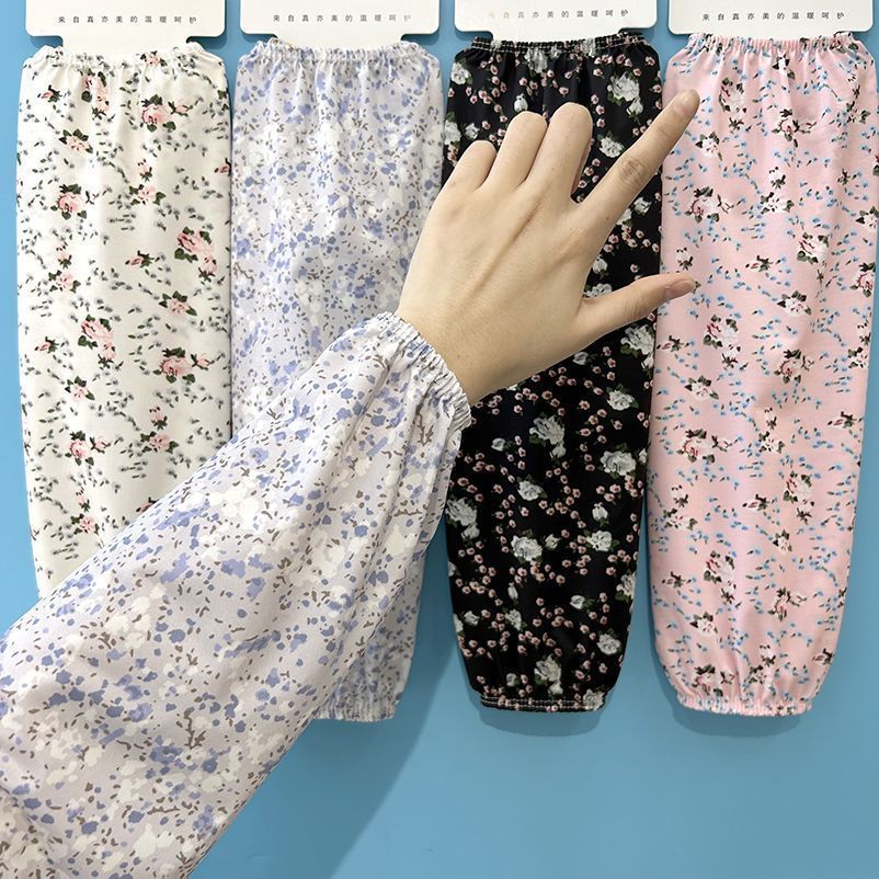 여름 여성용 꽃무늬 아이스 실크 슬리브, 느슨하고 얇은 자외선 차단 팔 보호대, 야외 자외선 차단 아이스 슬리브, 긴 슬리브스토어 가기