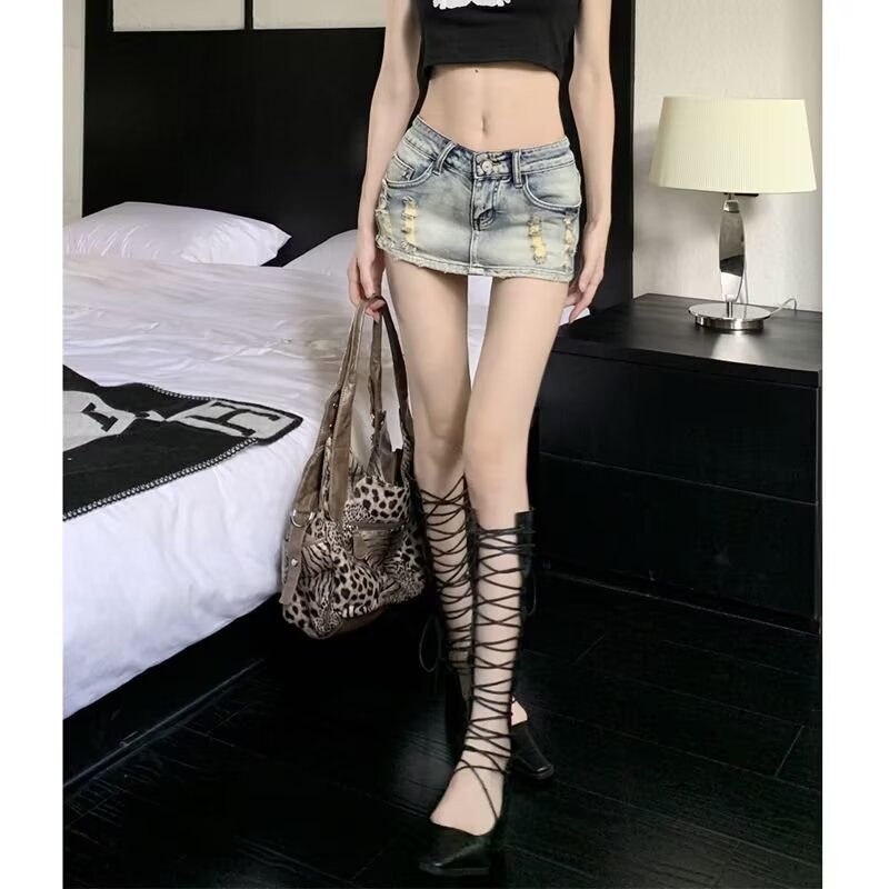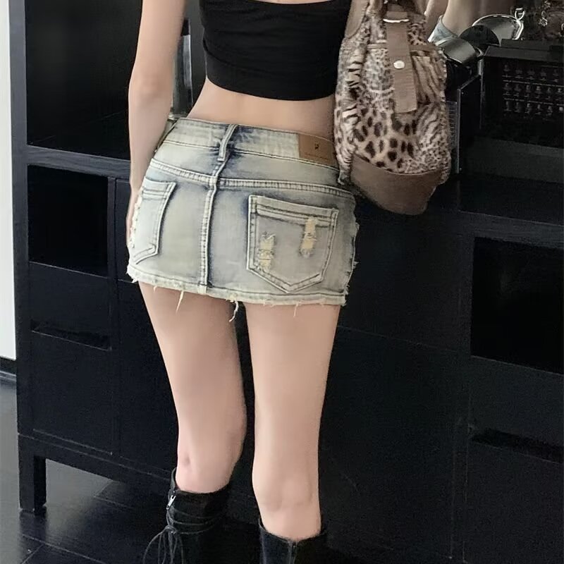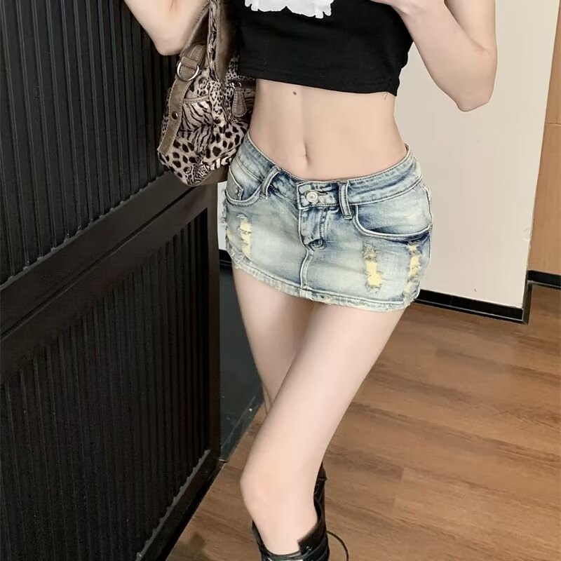 여성용 초단기 미니 스커트, 신축성 있는 로우 웨이스트 데님 스커트, 섹시하고 몸에 꼭 맞는 엉덩이를 덮는 노출 방지 스커트스토어 가기