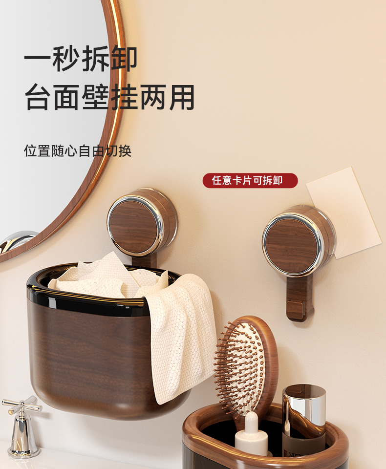 • 흡착컵 페이스타올 수납통 - 본체 블랙 + 월넛