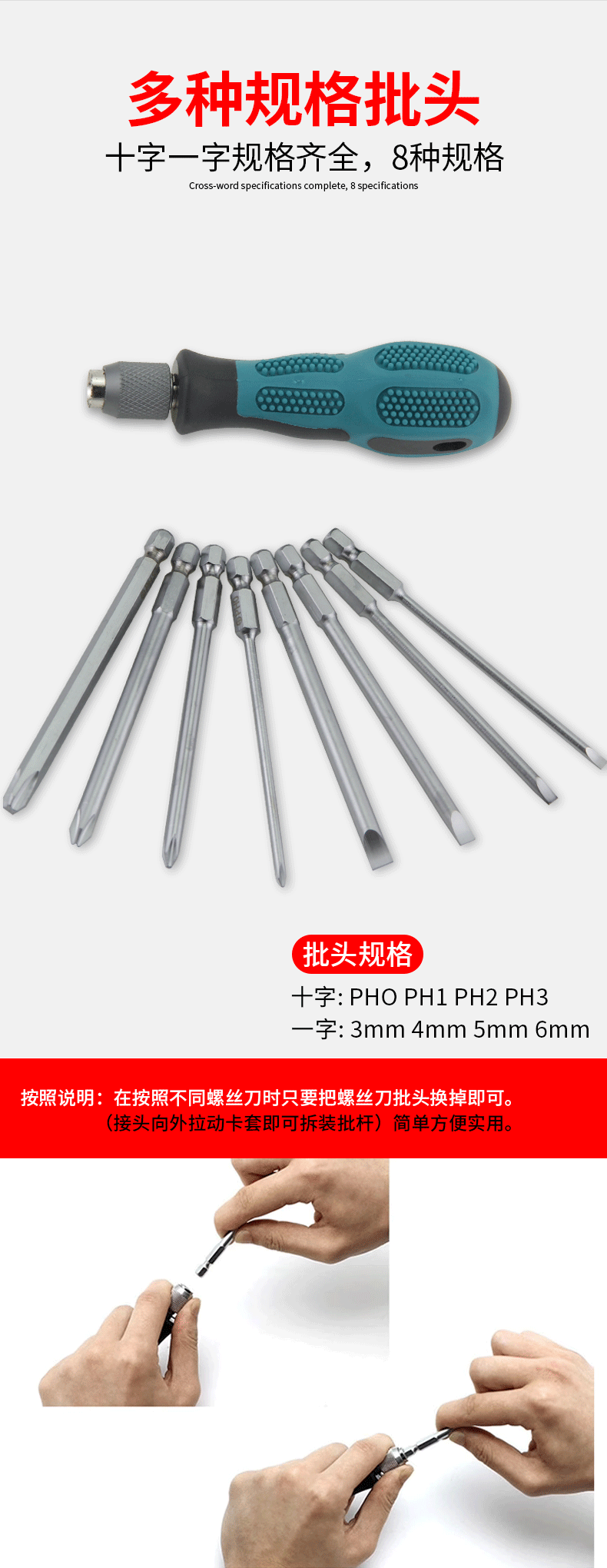1/4 일자형 드라이버 8-in-1 드라이버 홈 수리 세트 크롬 바나듐 강철 드라이버 휴대용 가방스토어 가기