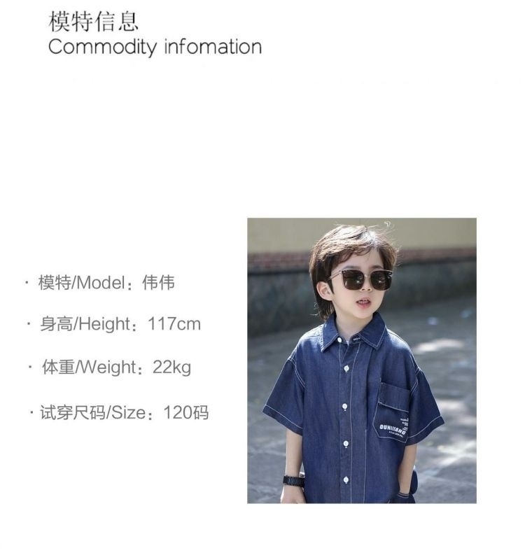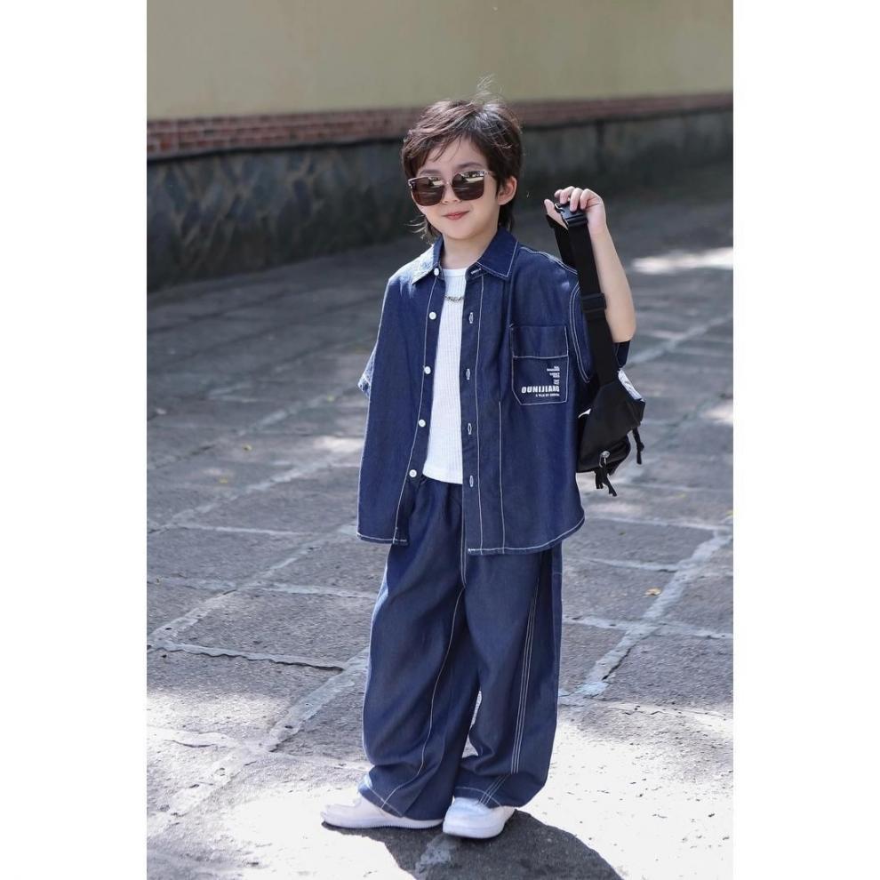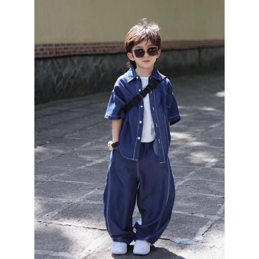 소년 여름 데님 정장 2025 새로운 중대형 어린이 여름 얇은 캐주얼 셔츠와 바지 어린이 투피스 세트스토어 가기