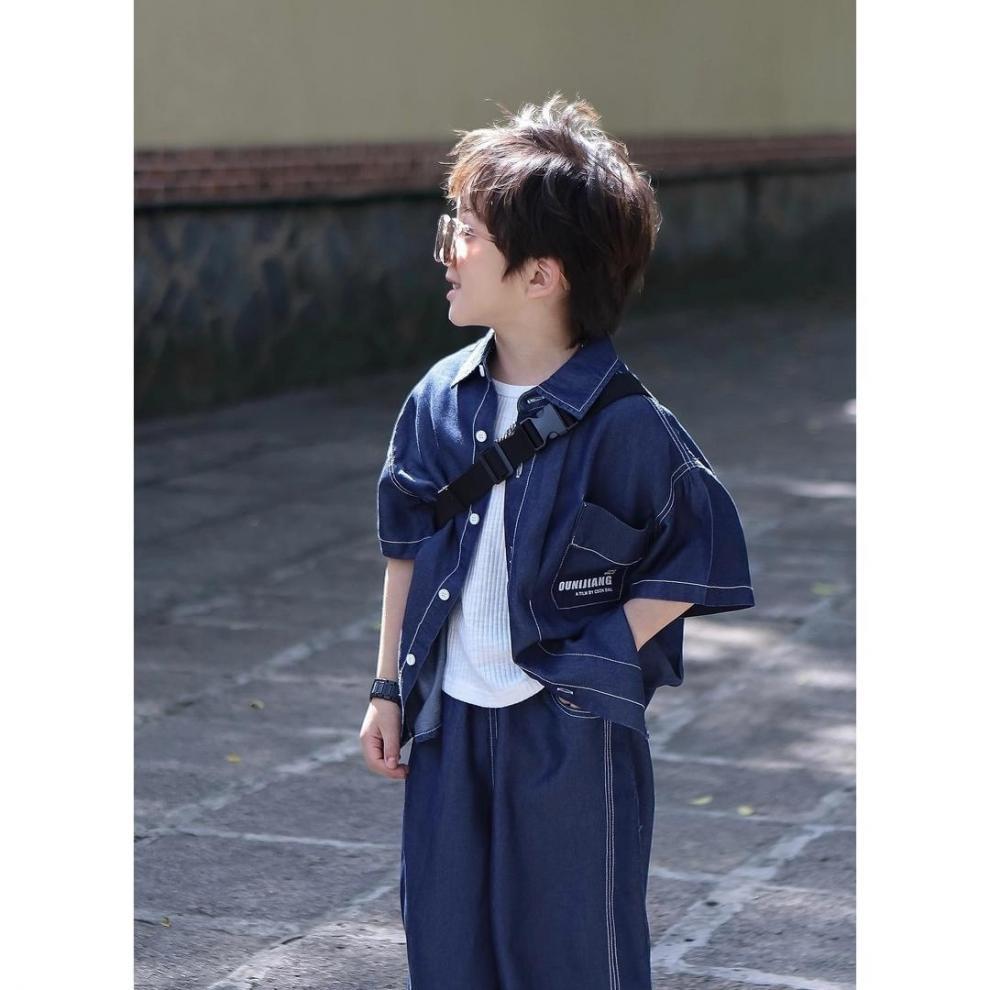 소년 여름 데님 정장 2025 새로운 중대형 어린이 여름 얇은 캐주얼 셔츠와 바지 어린이 투피스 세트