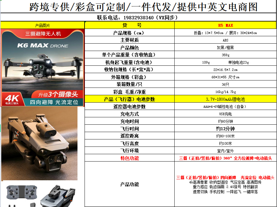 국경 K6max 장애물 회피 드론 HD 항공 사진 소년 장난감 원격 제어 항공기 Quadcopter 모델 항공기스토어 가기