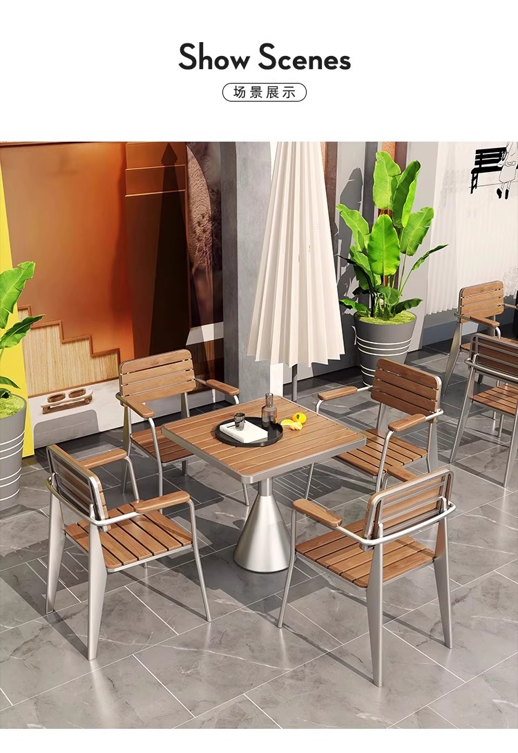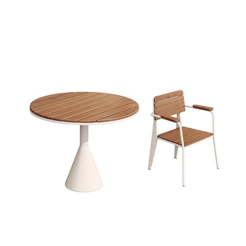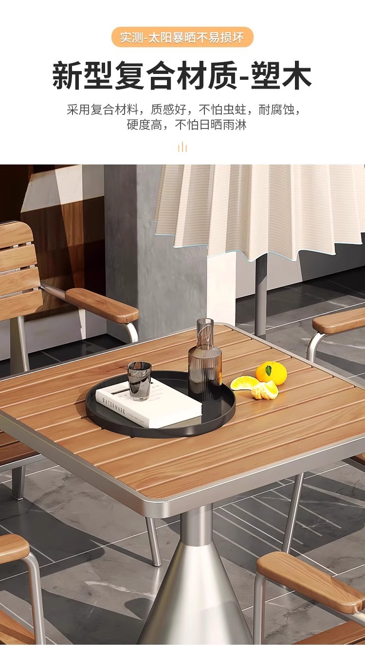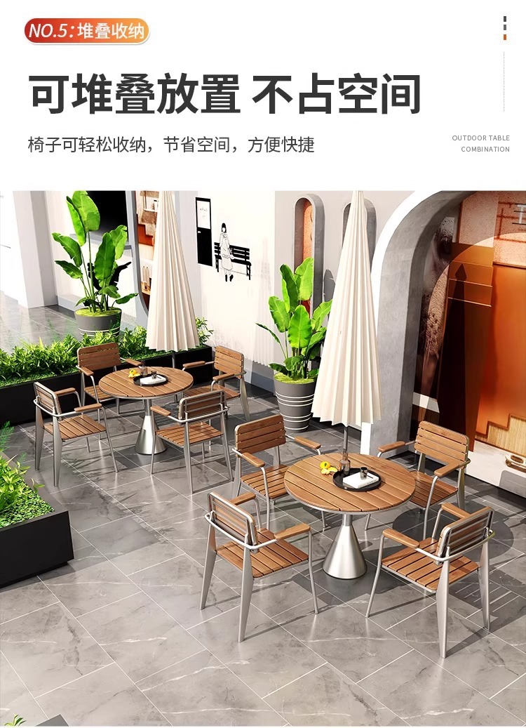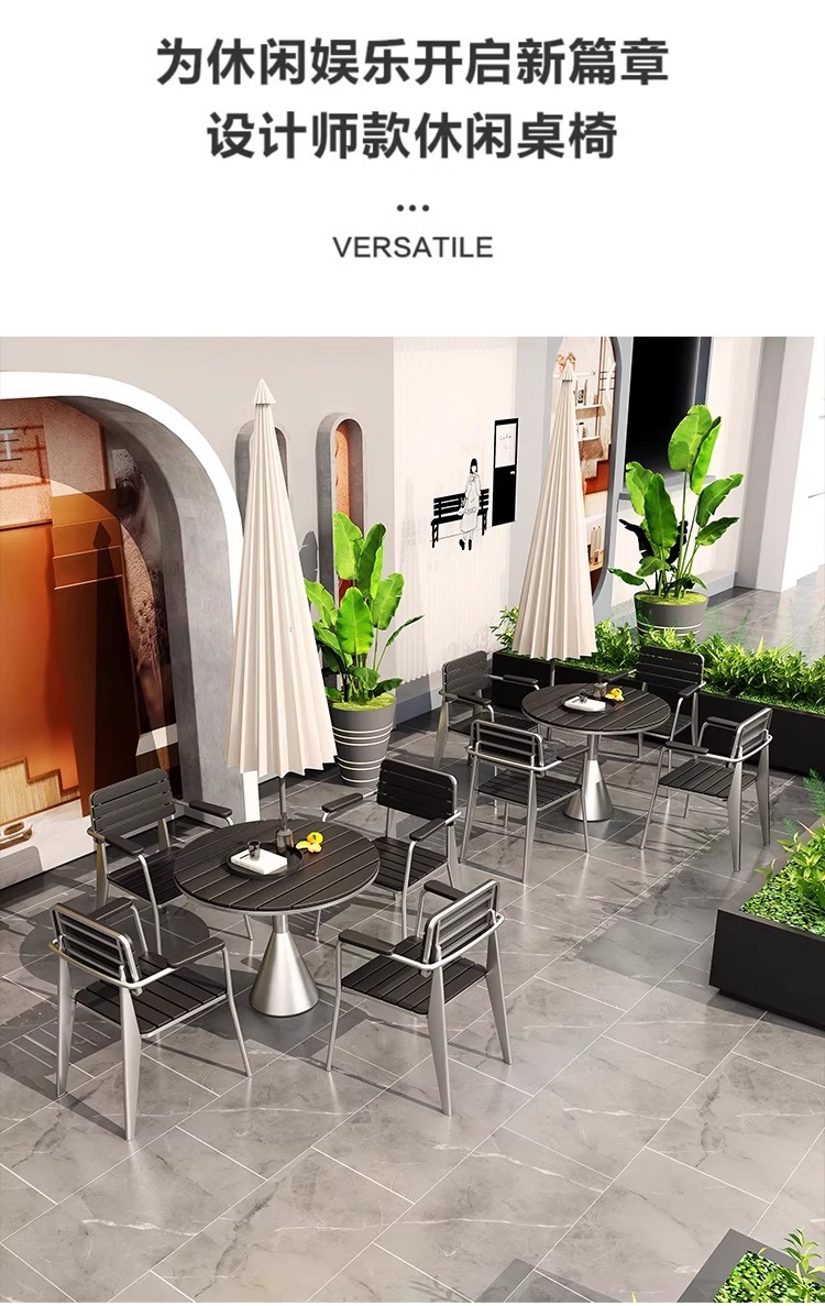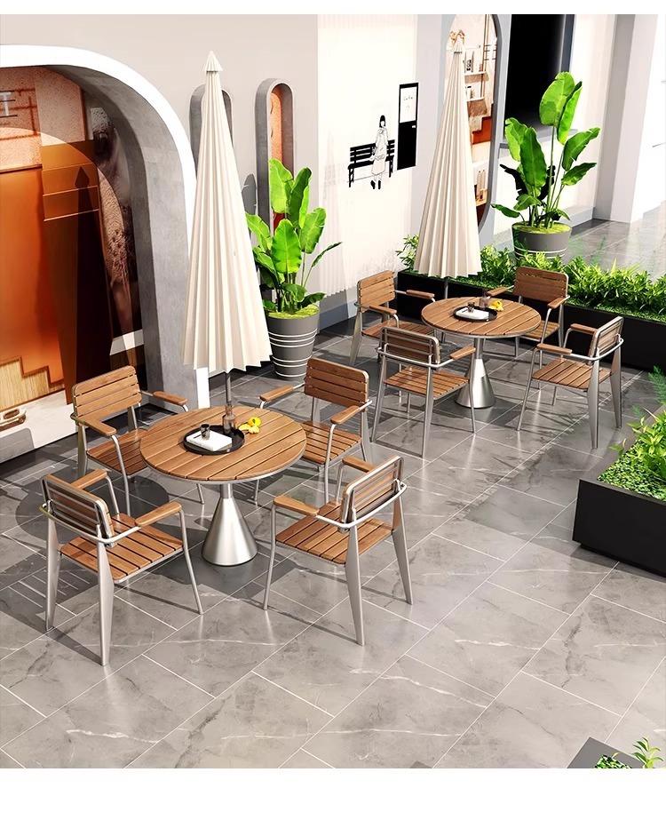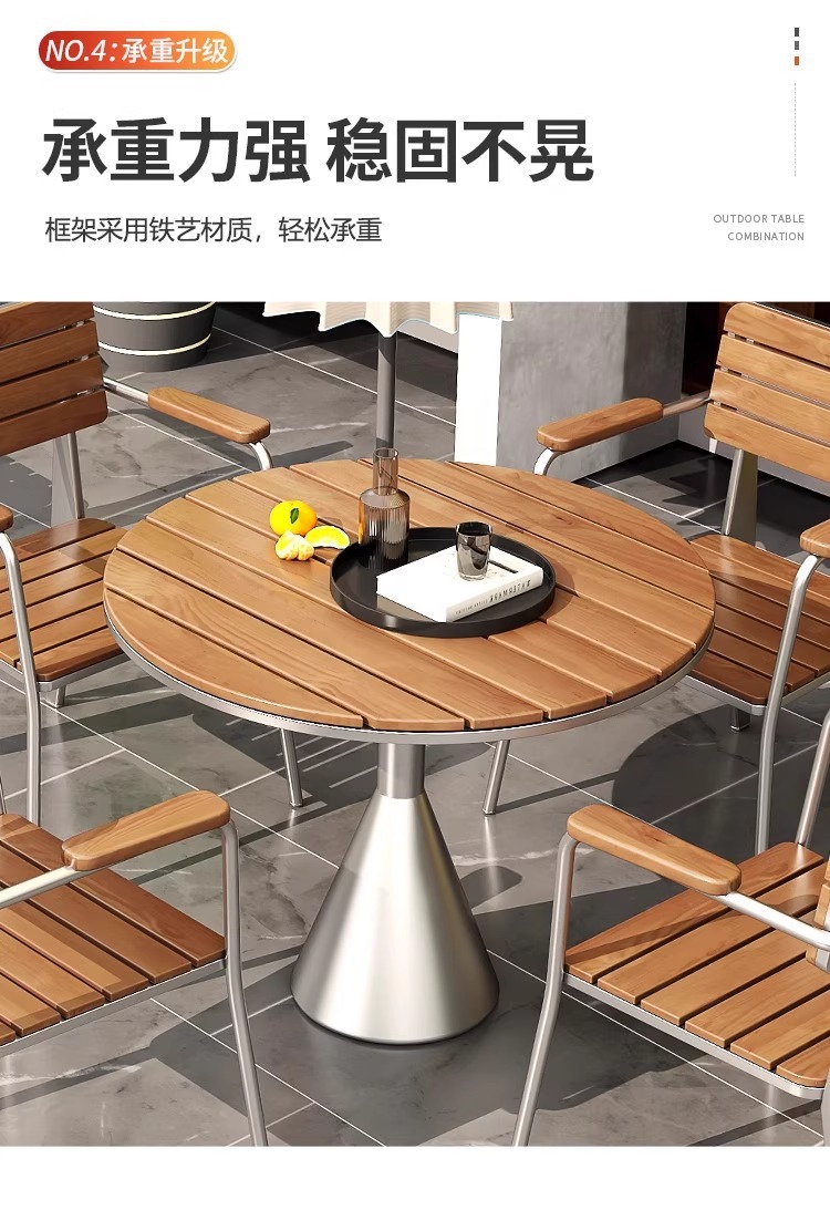 야외 방수 및 자외선 차단제 테이블과 의자 조합 야외 밀크티 숍 레저 공간 작은 원형 테이블 바 커피 숍 야외 식탁