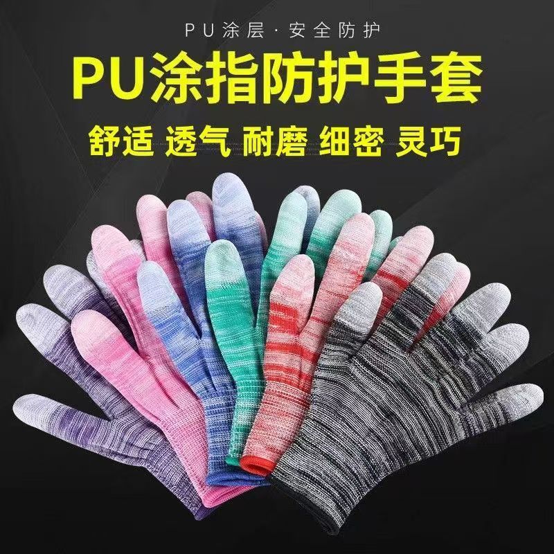 • 줄무늬 PU 코팅 손가락 장갑