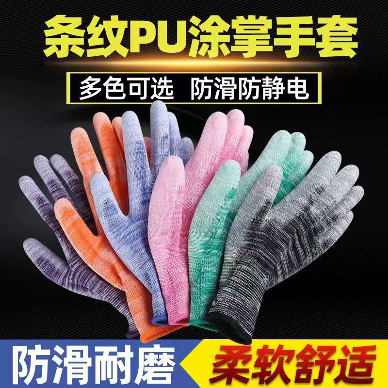 • 줄무늬 PU 코팅 장갑