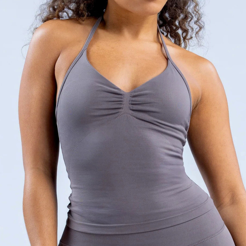 크로스보더 심리스 요가 홀터넥 조끼, 고탄력 엉덩이 노출 요가 피트니스 팬츠, 서스펜더 브라 세트