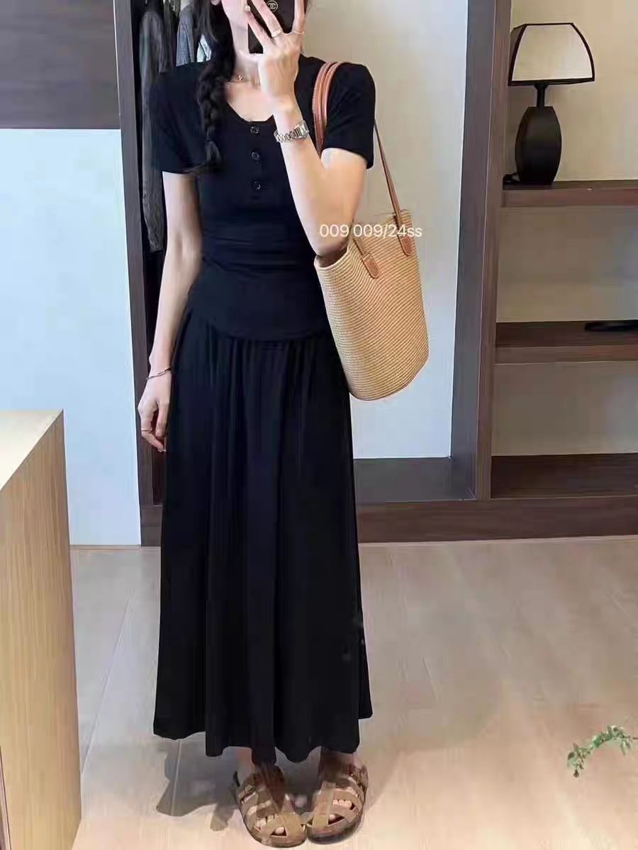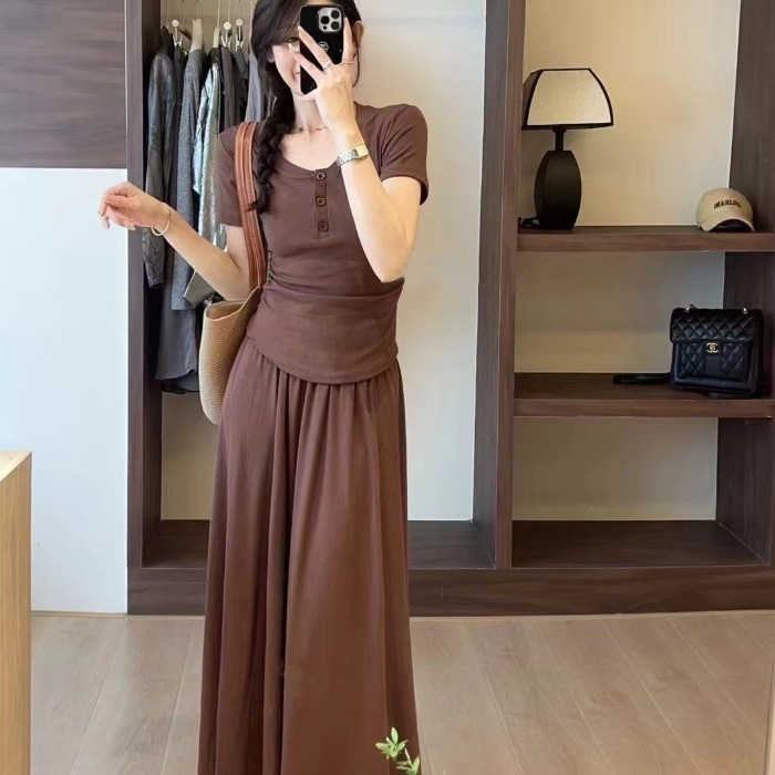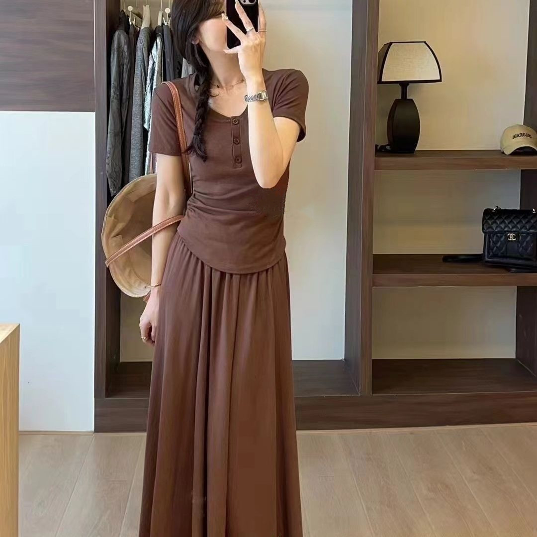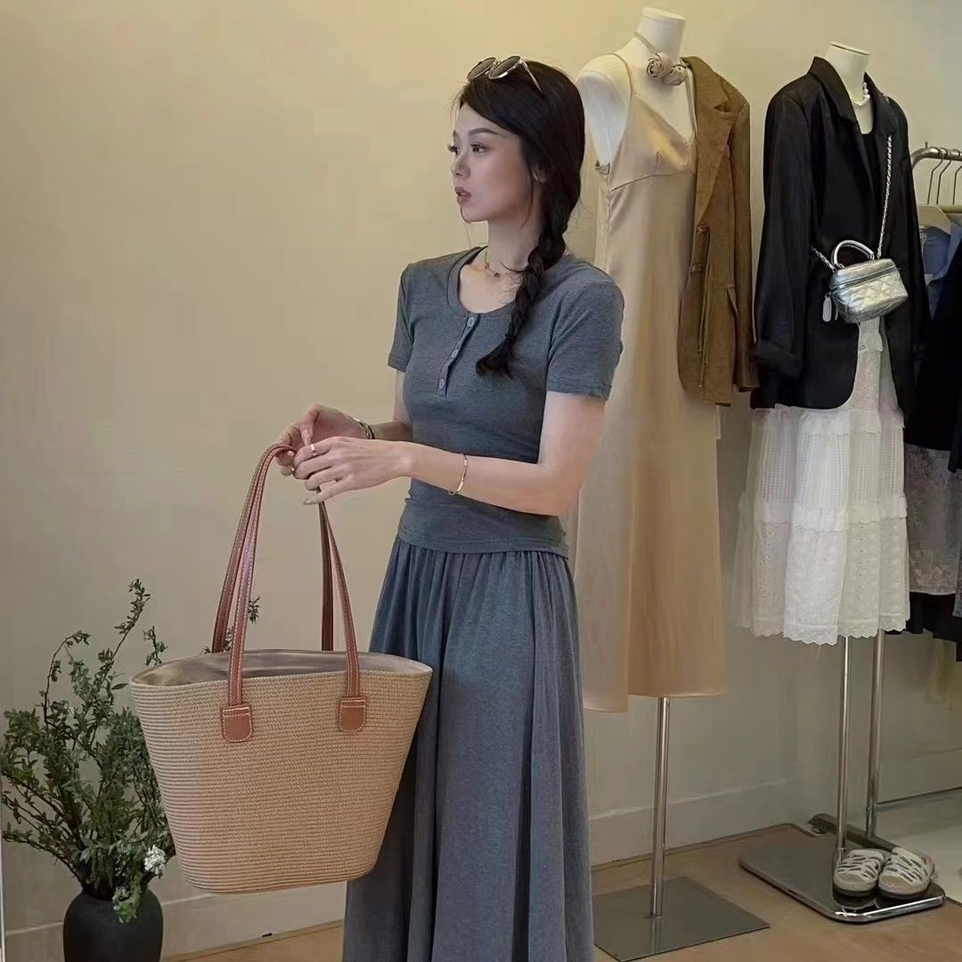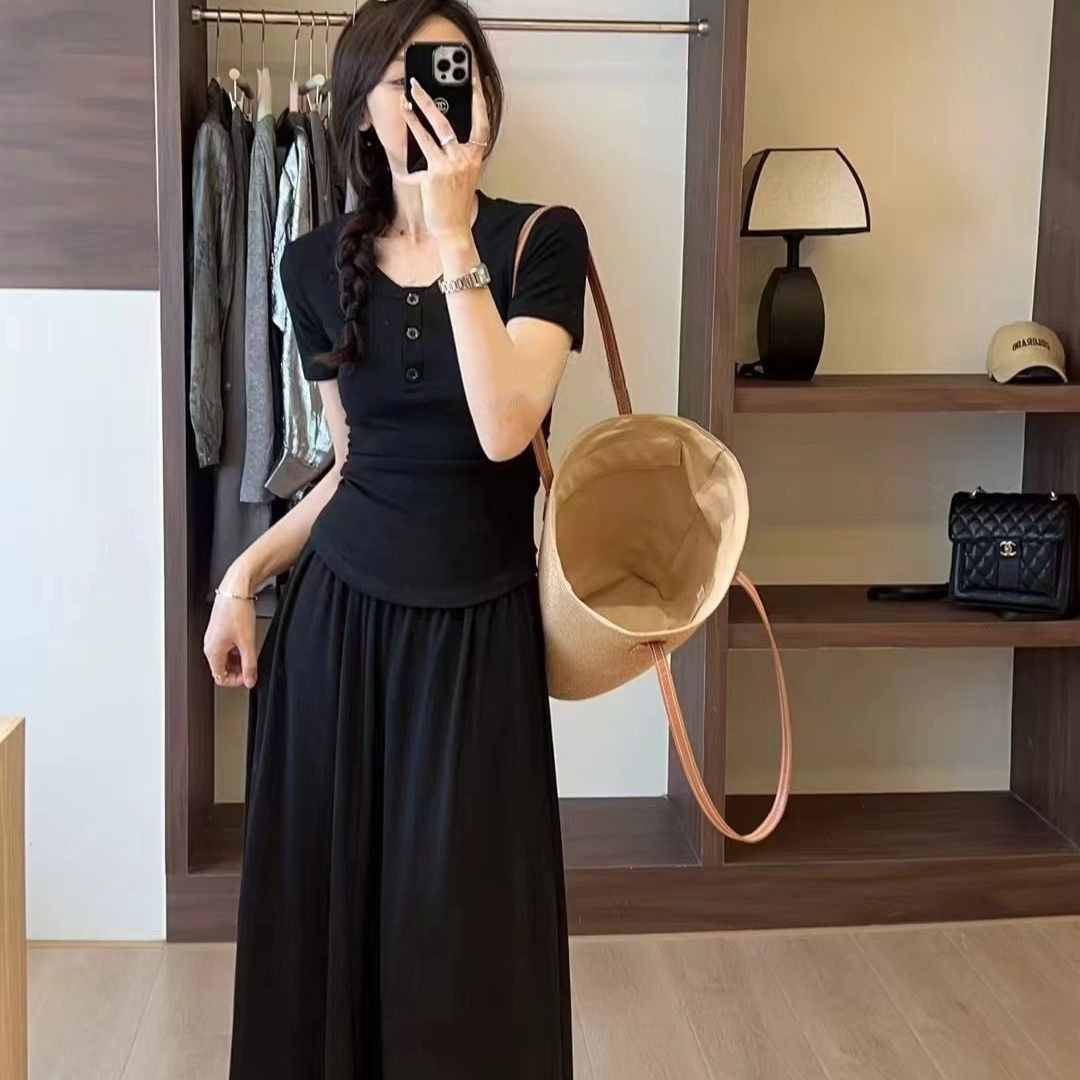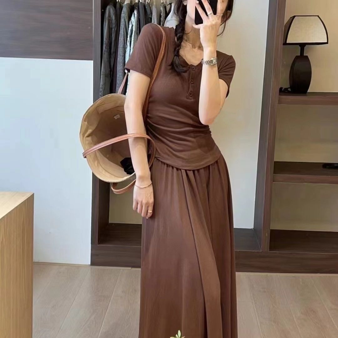올해 여성을 위한 인기 있는 아름다운 정장 스커트 2025년 여름 신작 반팔 티셔츠 탑 캐주얼 스커트 투피스 세트