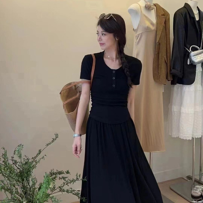올해 여성을 위한 인기 있는 아름다운 정장 스커트 2025년 여름 신작 반팔 티셔츠 탑 캐주얼 스커트 투피스 세트스토어 가기