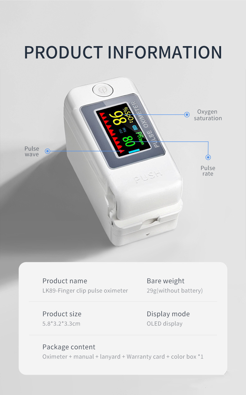 LK89TFT 핑거 클립 온 산소 농도계 손가락 끝 맥박 산소 포화도 모니터링 LK89 산소 농도계 산소 농도계