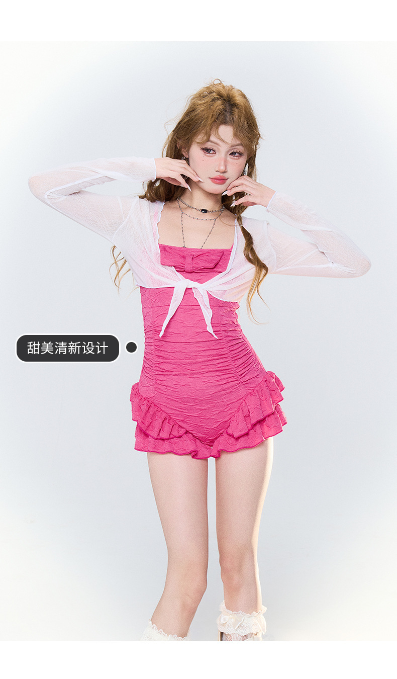 스웨트 셔츠가 달린 여성용 원피스 수영복, 여성을 위한 달콤하고 순수한 소녀, 배를 덮고 슬리밍, 온천 휴가, 보수적인 수영복스토어 가기