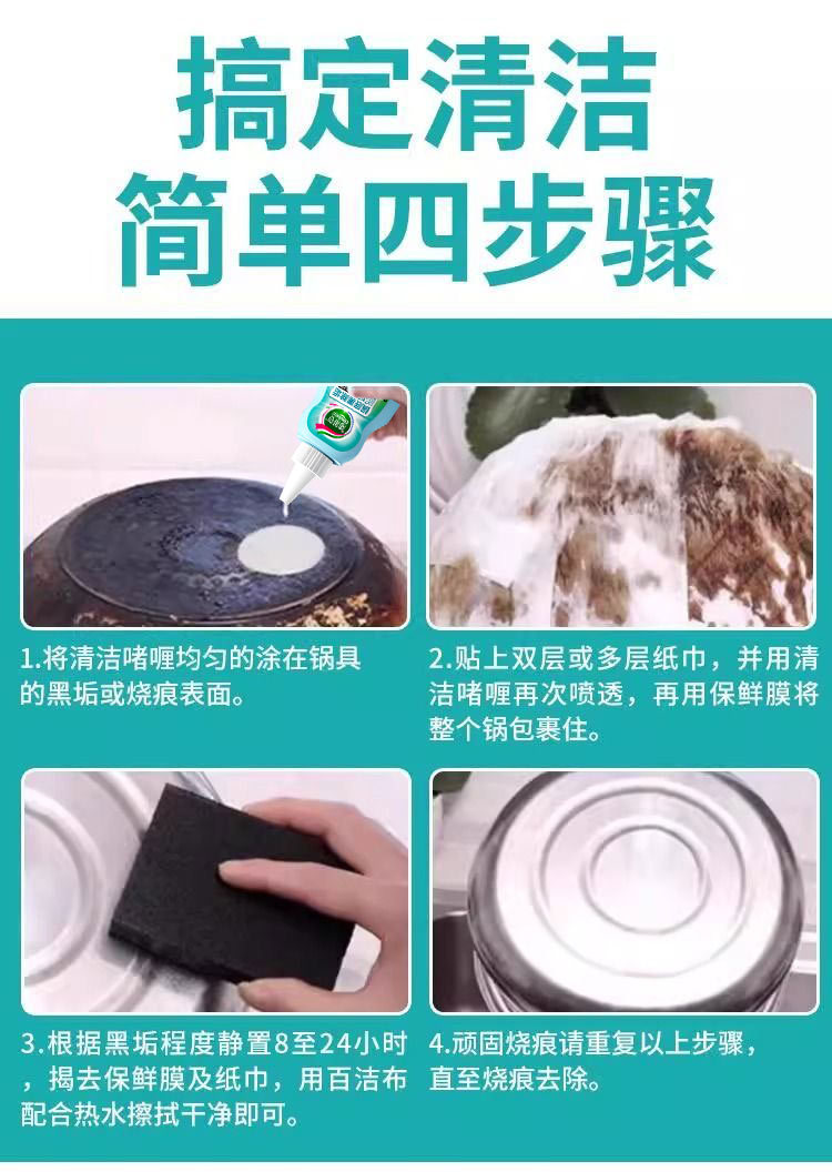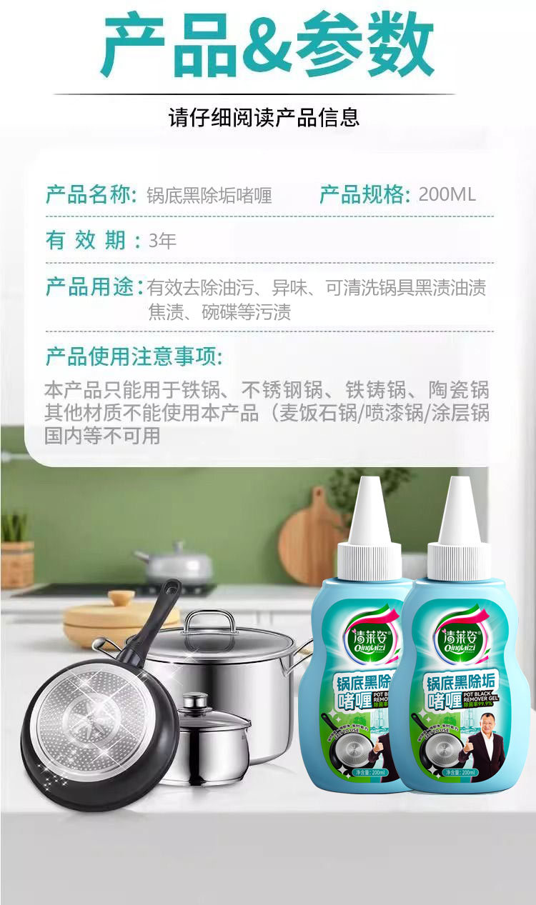 Qinglaizi 냄비 바닥 검은 먼지 젤 블랙 냄비 바닥 스테인레스 스틸 오일 클리너 주방 냄비 강력한 오염 제거제스토어 가기