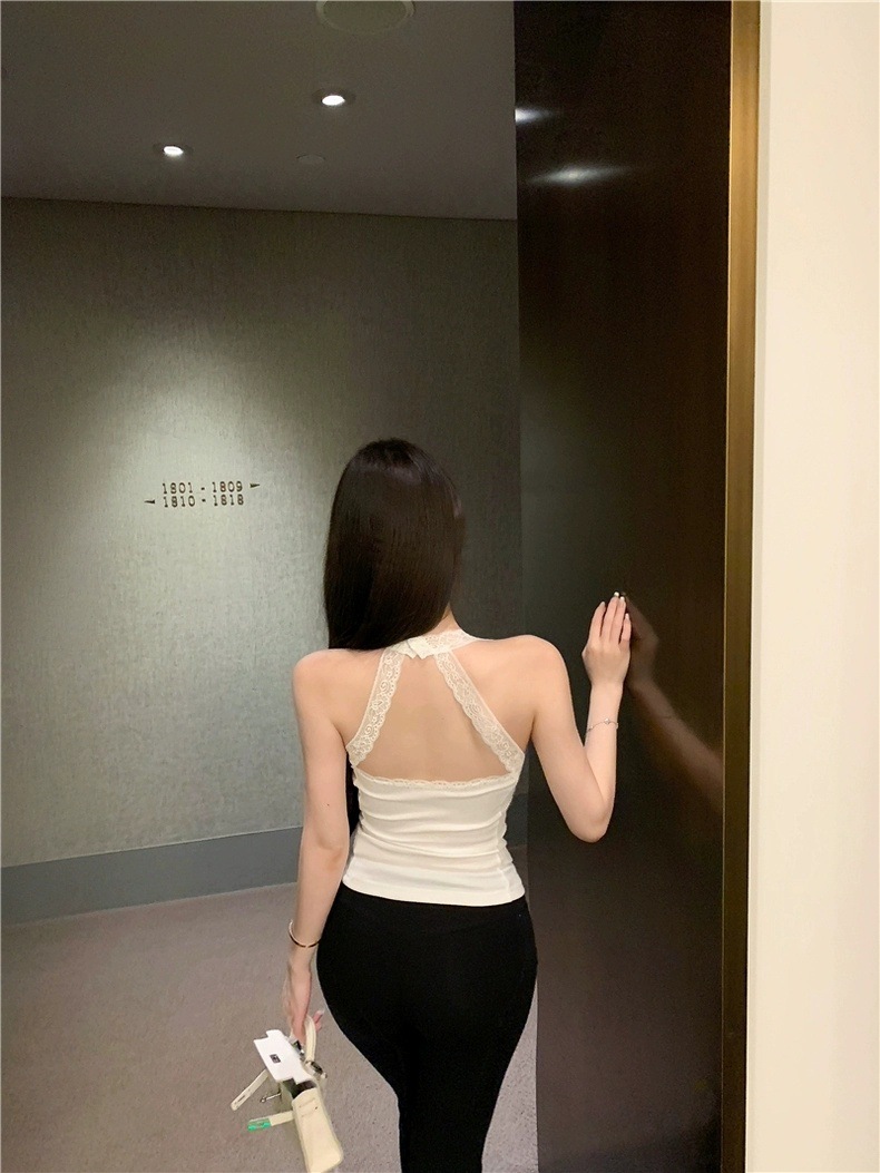 L5309를 한국어로 번역하세요 # 레이스 스플라이싱 홀터넥 핫걸 서스펜더에는 고정 컵 가슴 패드가 내장되어 있으며 슬림핏 아우터웨어 및 이너웨어 쇼트탑스토어 가기