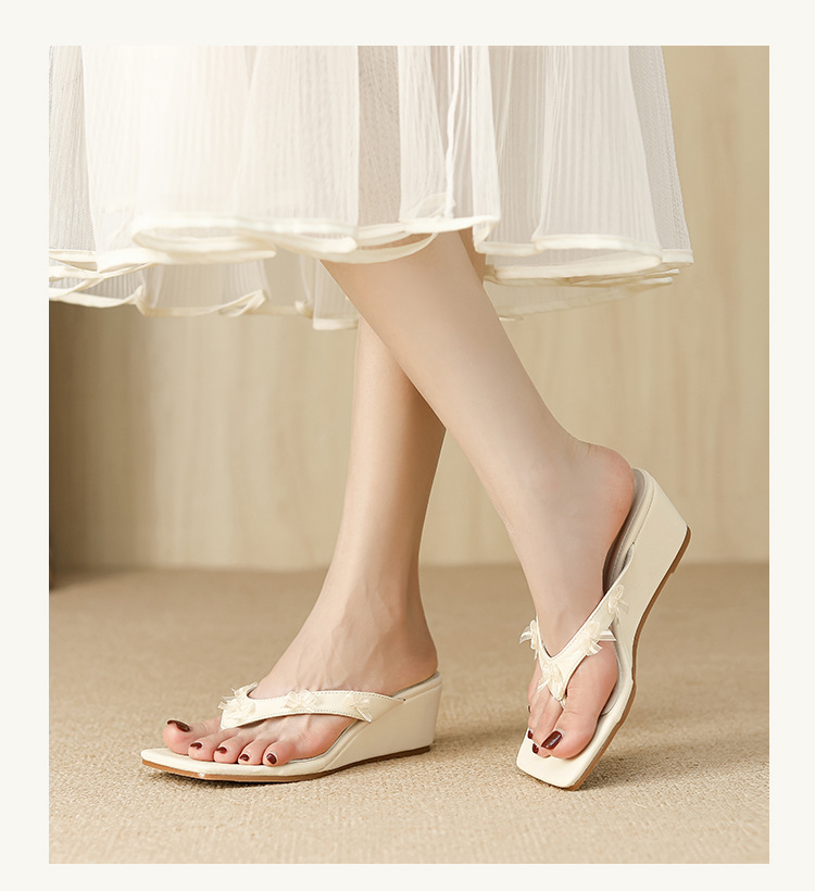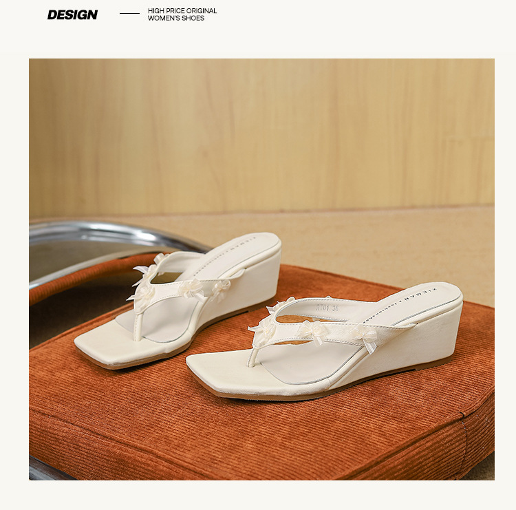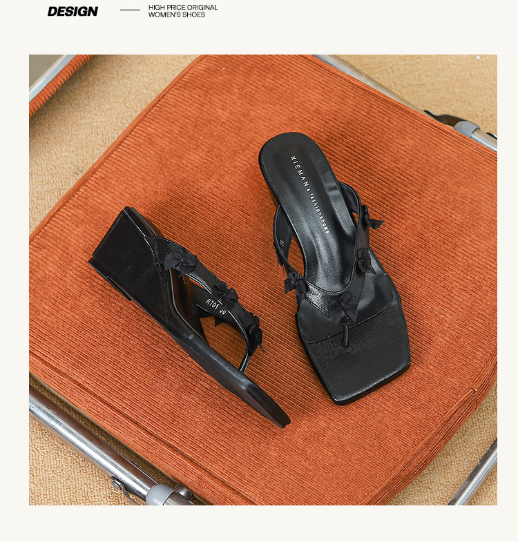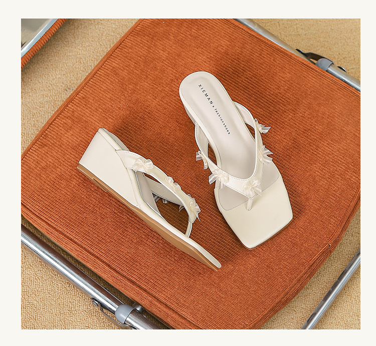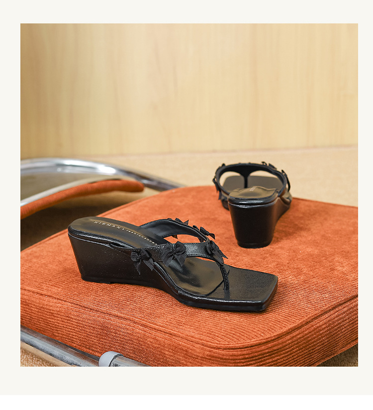 Qianlihu의 달콤한 휴가 스타일 웨지 힐 슬리퍼는 나비 매듭 슬리퍼와 함께 착용할 수 있습니다. 틈새 스타일 여름 여성 신발