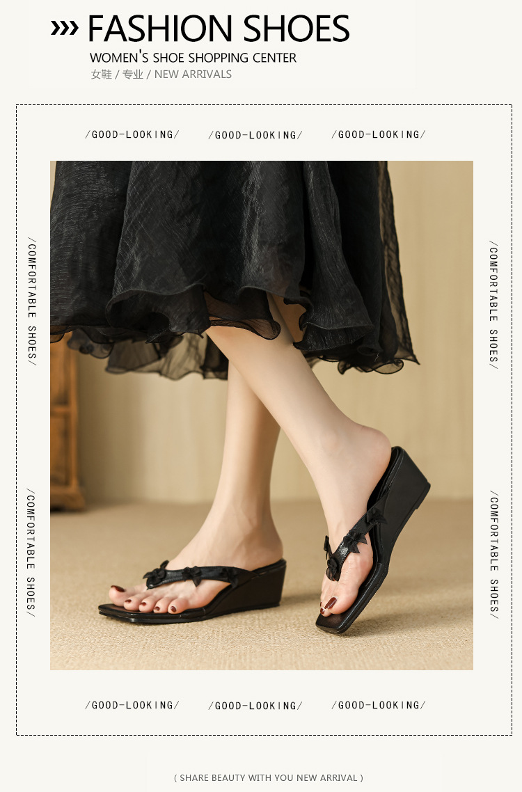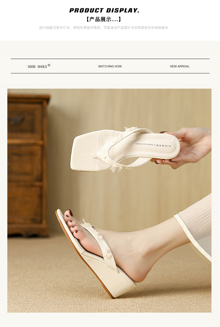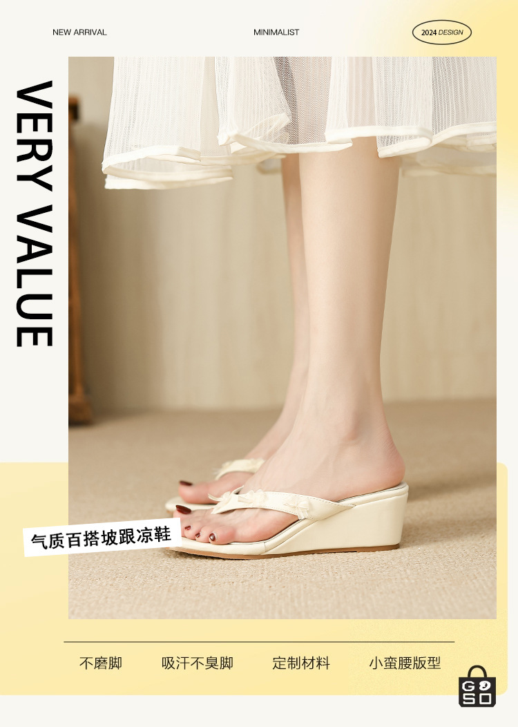 Qianlihu의 달콤한 휴가 스타일 웨지 힐 슬리퍼는 나비 매듭 슬리퍼와 함께 착용할 수 있습니다. 틈새 스타일 여름 여성 신발스토어 가기