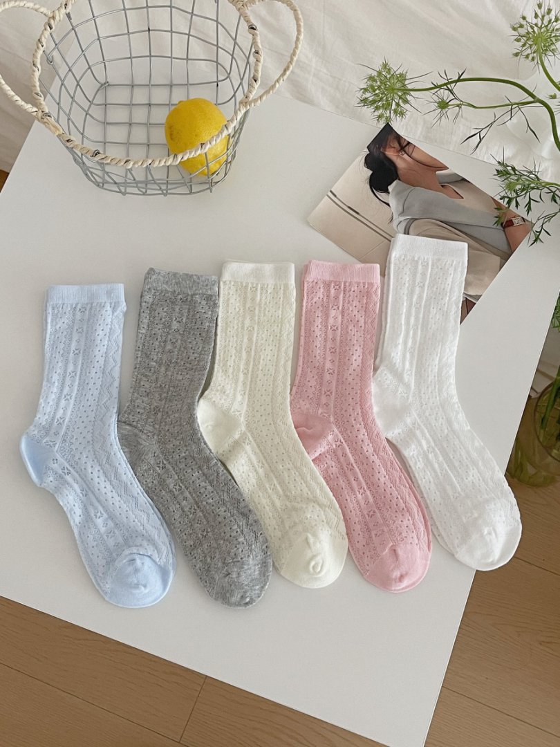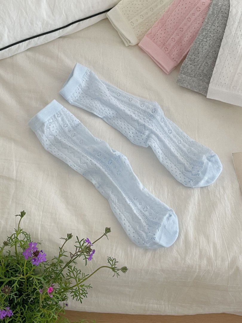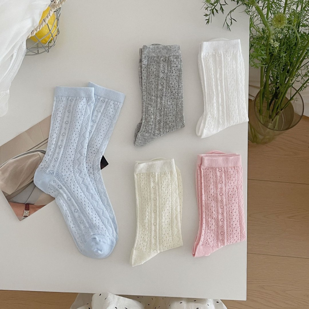 여름용 여성용 한국식 중공 양말 얇은 메쉬 통기성 일본식 달콤한 단색 다용도 소녀 양말