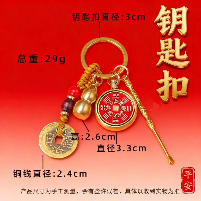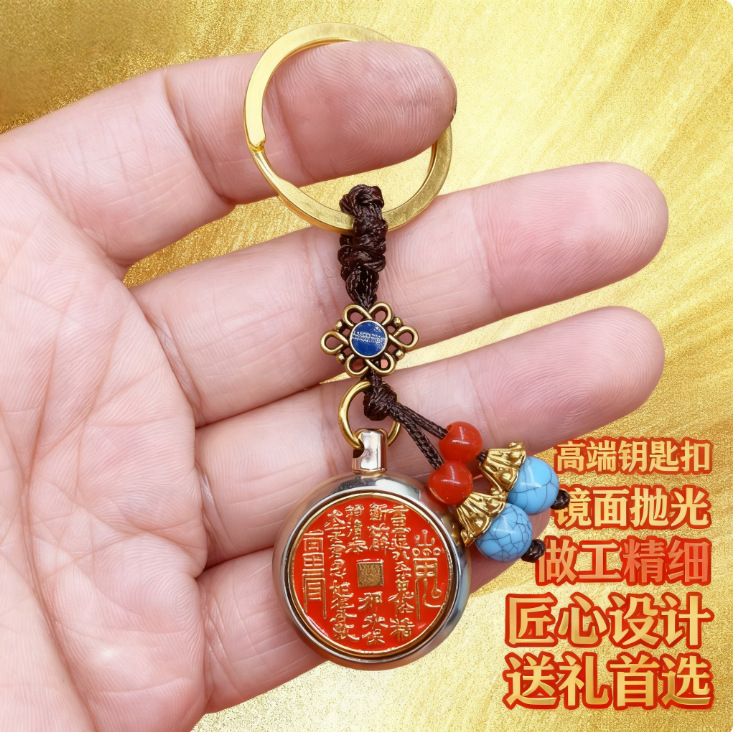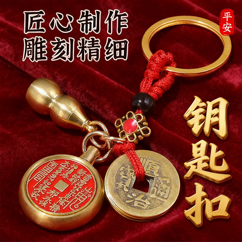 황동 다섯 황제 동전 펜던트 쥬얼리 진사 조롱박 열쇠 고리 선물 산 유령 돈 회전 열쇠 고리 펜던트스토어 가기