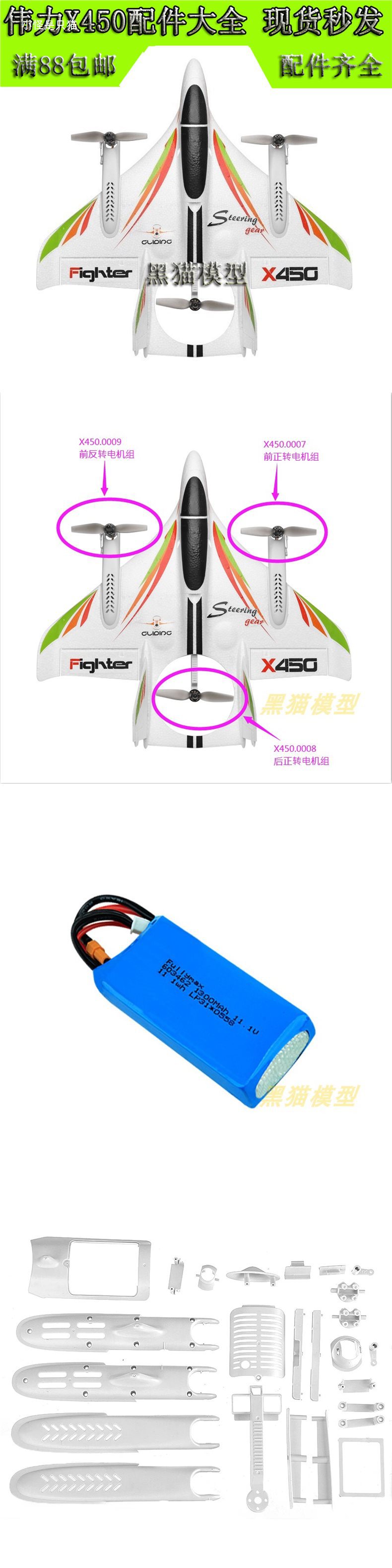 XKX450 원격 제어 항공기 고정 날개 예비 부품 프로펠러 서보 모터 배터리 ESC스토어 가기