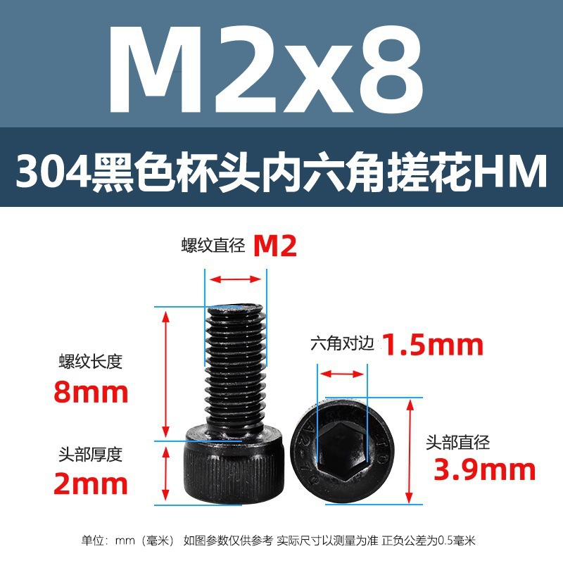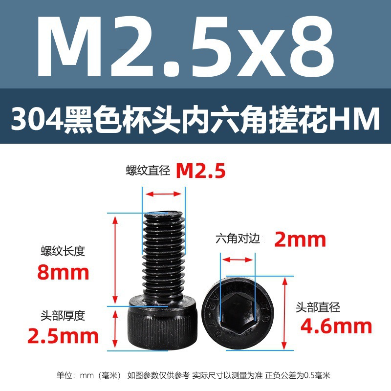 • HM2.5*8 (304 블랙 컵 헤드 러빙 패턴) (50개)