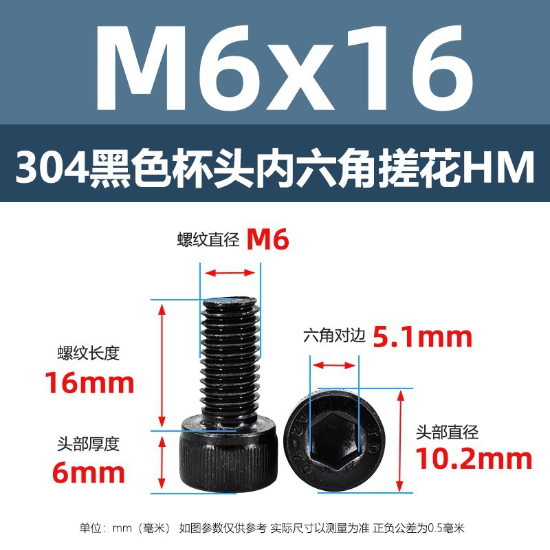 • HM6*16 (304 블랙 컵 헤드 러빙 패턴) (10개)