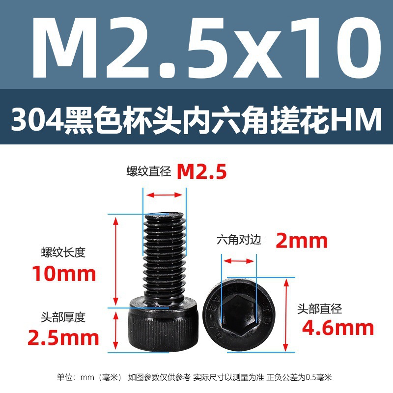 • HM2.5*10 (304 블랙 컵 헤드 러빙 패턴) (50개)