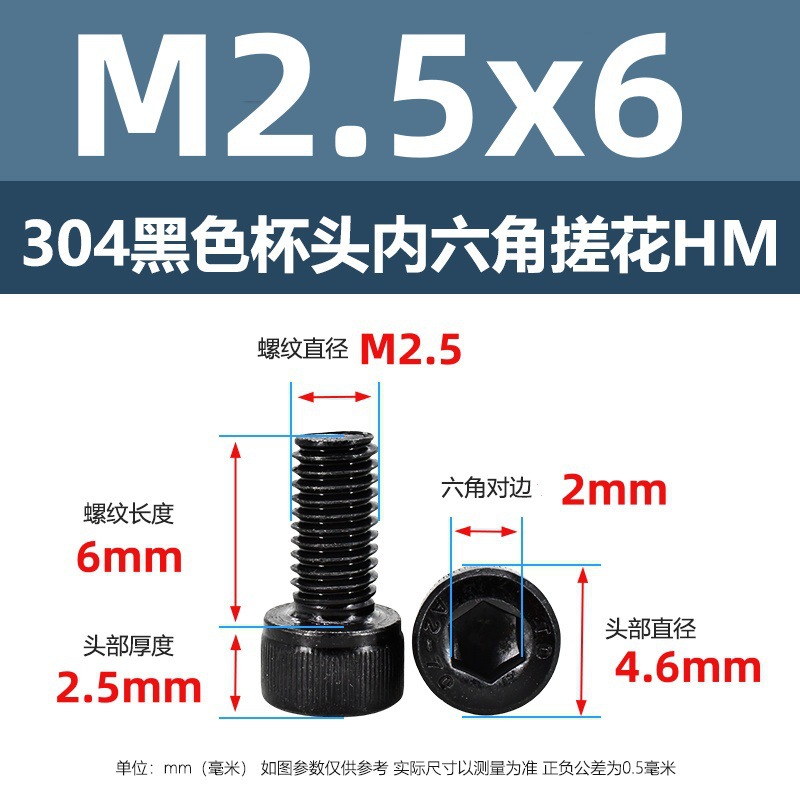 • HM2.5*6 (304 블랙 컵 헤드 러빙 패턴) (50개)