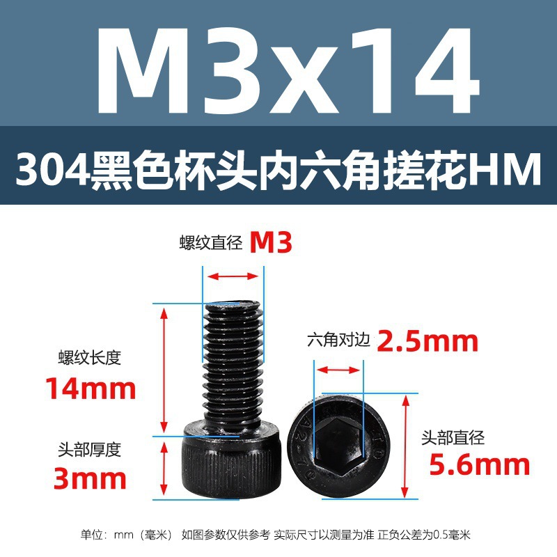 • HM2.5*14 (304 블랙 컵 헤드 러빙 패턴) (50개)