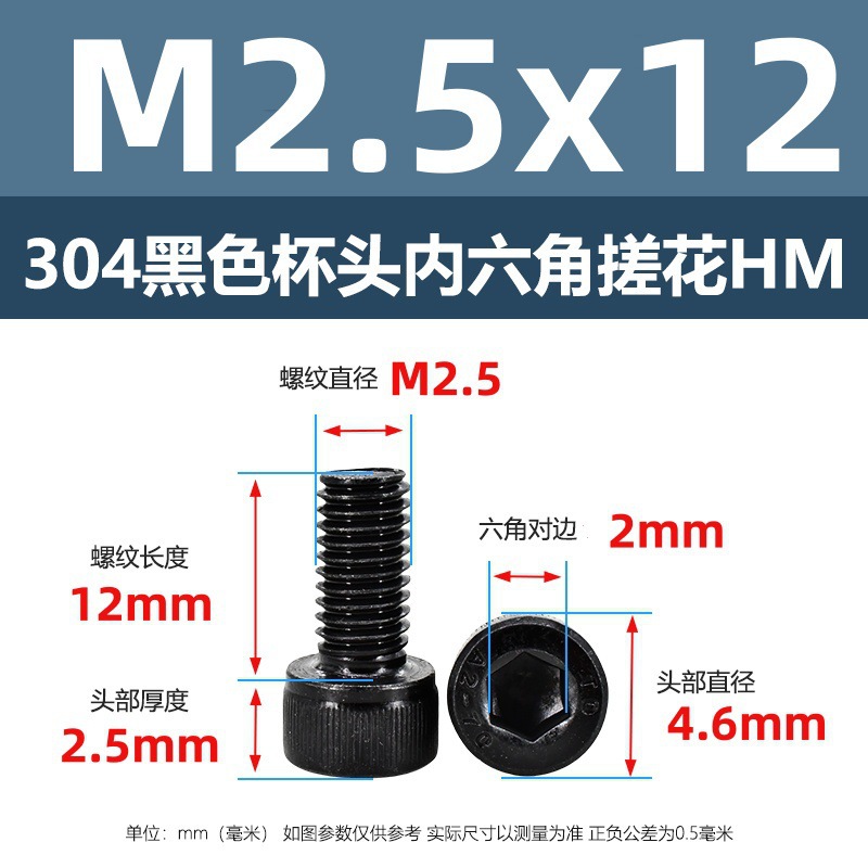 • HM2.5*12 (304 블랙 컵 헤드 러빙 패턴) (50개)