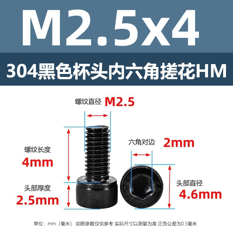 • HM2.5*4 (304 블랙 컵 헤드 러빙 패턴) (50개)